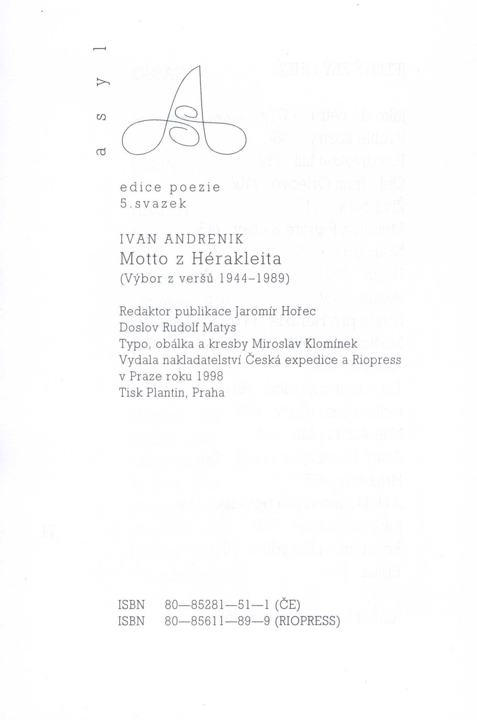 Asyl, edice poezie (Česká expedice)Country Czech Republic Language Czech Note Zdobená barevná obálka. - Frontispis. - Černobílé celostránkové ilustrace. - Doslov. - Obsah. - Na zadní straně obálky ediční přehled a poznámka o edici Asyl.