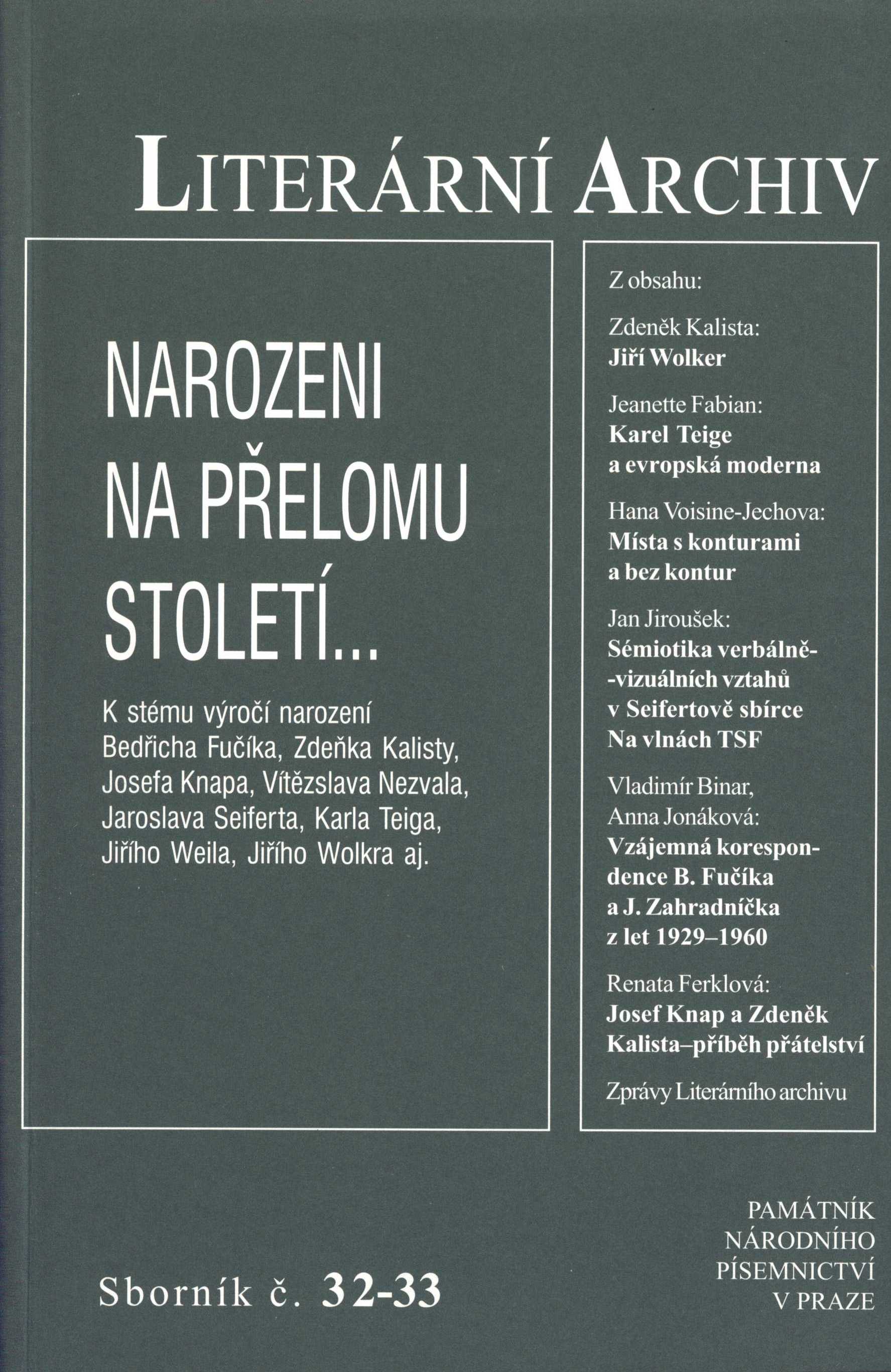 Title information Literární archiv : sborník Památníku národního písemnictví = Jahrbuch des Museums des tschechischen Schrifttums = Annual of the Museum of the Czech Literature = Mémoires du Musée de la Littérature tchèque. Narozeni na přelomu století... : k stému výročí narození Bedřicha Fučíka, Zdeňka Kalisty, Josefa Knapa, Vítězslava Nezvala, Jaroslava Seiferta, Karla Teiga, Jiřího Weila, Jiřího Wolkra aj. / odpovědná redaktorka Marta Zahradníková ; grafická úprava David Martinek ; obálka a technická redakce Zdeněk Freisleben Další autoři Zahradníková, Marta, 1940-2005 (Publishing director) Freisleben, Zdeněk, 1947- (Bookjacket designer) Martinek, David, 1972- (Book designer) Corporation Památník národního písemnictví (muzeum literatury) (Publisher) Denoc, spol. s r.o. (tiskárna) (Printer) Roč., číslo 32-33, 2000-2001 Další var.názvy Narozeni na přelomu století... : k stému výročí narození Bedřicha Fučíka, Zdeňka Kalisty, Josefa Knapa, Vítězslava Nezvala, Jaroslava Seiferta, Karla Teiga, Jiřího Weila, Jiřího Wolkra aj. Edition statement Vydání první Publication Praha : Památník národního písemnictví, 2002 Manufacture Denoc, spol. s r.o. Scope 476 stran : ilustrace, portréty, faksimile ; 23 cm ISBN 80-85085-53-4 (brožováno) Country Czech Republic Language Czech Note Převážně čb. fotografie, portréty a faksimile. - Obsahuje bibliografii a bibliografické odkazy. - Ediční poznámka. - Anglická resumé. - 500 výtisků
