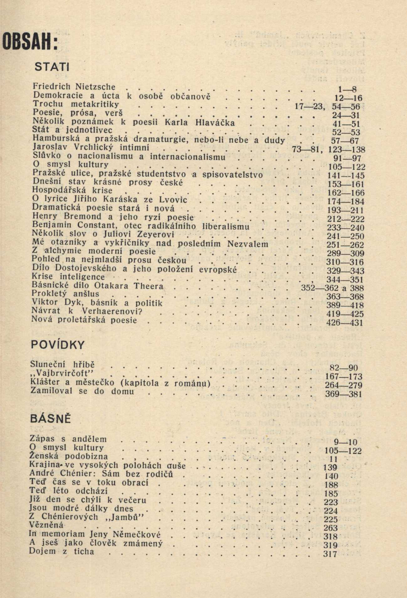 Document kind PERIODIKA - Svázaný ročník periodika Periodicita neurčitelná periodicita Parent Šalda, F. X. Šaldův zápisník Keywords česká literatura * kratší prózy * básně * světová literatura * čeští spisovatelé * světoví spisovatelé * literární kritici * česká kultura * umění * společnost * Česko * r. 1930-1931 * literární kritiky * literární komentáře * politické komentáře * české časopisy UDC 821.162.3-92 * 82-1 * 821.162.3-051 * 008(437) * 7 * 82.09 Uživatelské pole PNP Sign. MUK 1368/3: na titulním listu podpis J. Mukařovský. Sign. MEL 2300: nakladatelská vazba Sign. VMartínek 837: Knihovna Vojtěcha Martínka. - Převazba v pevných deskách potažených modrým škrobovým papírem, šedý hřbet s tiskem. Sign. P 27 B 27: šedá nakladatelská vazba; kompletní ročník včetně titulního listu a obsahu, obálky vevázány na konci svazku Call number Track No. Location Info MUK 1368/3 0847/2005 Sbírka Eisner 0949 xxxx Sbírka Václavek 2221 xxxx Sbírka Šalda 295 xxxx Sbírka Kratochvíl 119 xxxx Sbírka Hora I 1444/1-9 xxxx Sbírka MEL 2300 3360/MEL Sbírka VMartínek 0837 1412/2014 Sbírka P 72 B 27 1280/Kl Sbírka