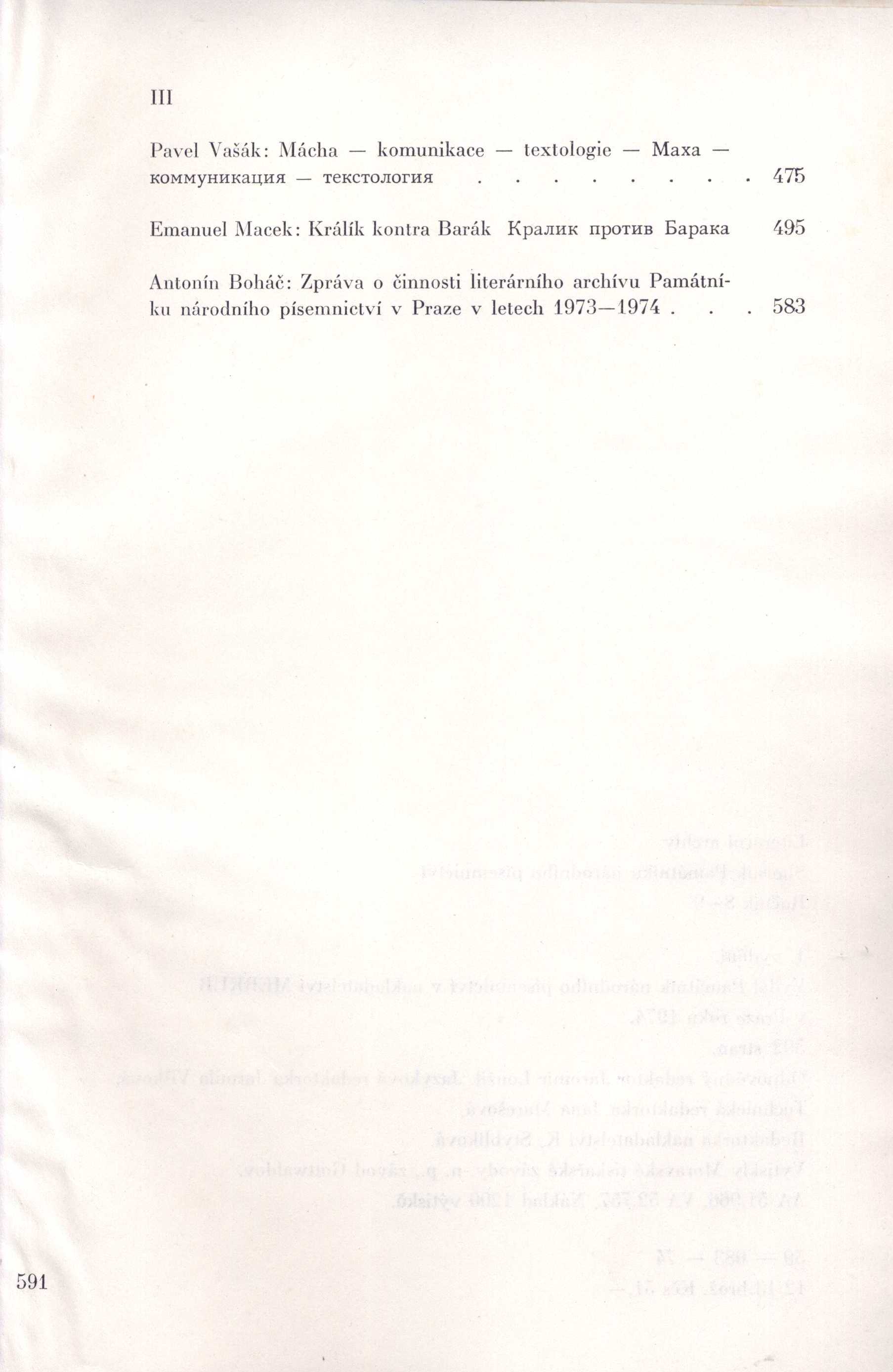 Title information Literární archív : sborník Památníku národního písemnictví = Sbornik Muzeja češskoj pis'mennosti = Jahrbuch des Museums des tschechischen Schrifttums = Annuel of the Museum of the Czech Literature = Mémoires du Musée de la Littérature Tchèque. K 200. výročí narození Josefa Jungmanna / odpovědný redaktor Jaromír Loužil Main entry-corp. Památník národního písemnictví (muzeum literatury) (Publisher) Další autoři Loužil, Jaromír, 1926-2013 (Editor) Roč., číslo 8-9, 1973-1974 Další var.názvy K 200. výročí narození Josefa Jungmanna Edition statement 1. vydání Publication V Praze : Merkur, 1974 Scope 591 stran, 16 nečíslovaných stran obrazových příloh : ilustrace ; 24 cm ISBN (Vázáno) Country Czech Republic Language Czech Note Čb. fotografie a portréty v příloze. - Cizojazyčná resumé. - 1200 výtisků.