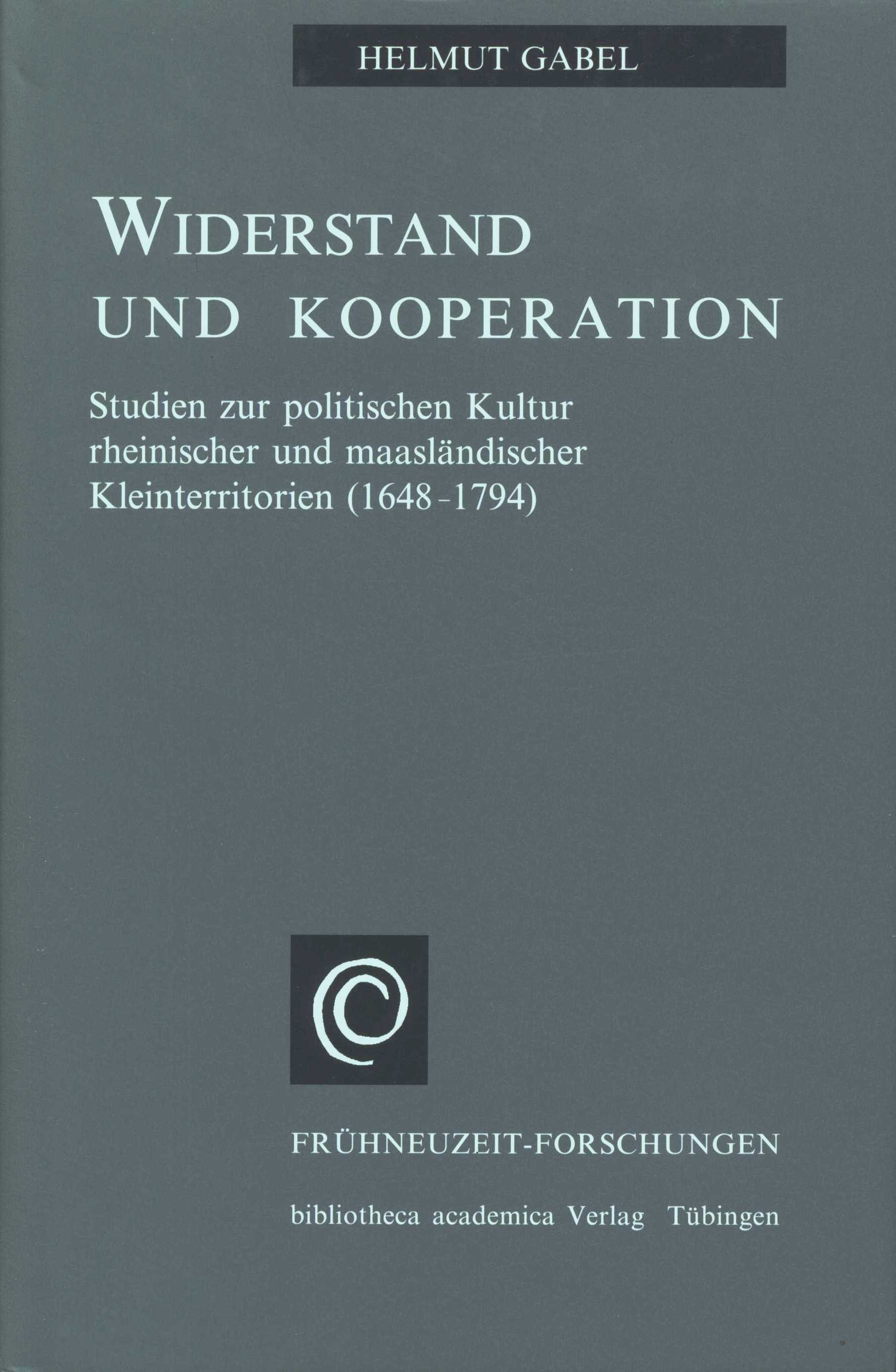 Title information Widerstand und Kooperation : Studien zur politischen Kultur rheinischer und maasländischer Kleinterritorien (1648-1794) / Helmut Gabel Personal name Gabel, Helmut, 1953- (Author) Další autoři Bibliotheca Academica Verlag (Tübingen) (Publisher) Publication Tübingen : bibliotheca academica Verlag, [1995] Scope 480 s. : il. ISBN 3-928471-11-2 (váz.) Edition Frühneuzeit-Forschungen Band 2