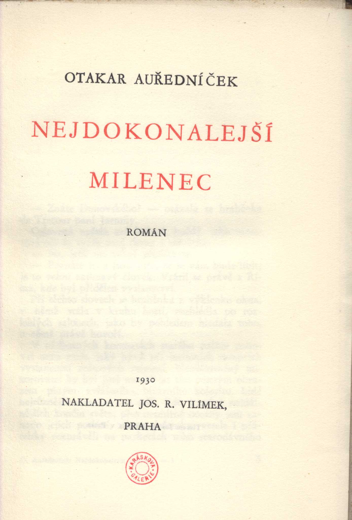 Title information Nejdokonalejší milenec : román / Otakar Auředníček Personal name Auředníček, Otakar, 1868-1947 (Author) (Dedicator) Další autoři Burian, Zdeněk, 1905-1981 (Bookjacket designer) Karásek ze Lvovic, Jiří, 1871-1951 (Dedicatee) Corporation Jos. R. Vilímek (nakladatelství) (Publisher) Publication Praha : Nakladatelství Jos. R. Vilímek, 1930 Scope 223 s. ISBN brož. Edition Vilímkova knihovna sv. 279