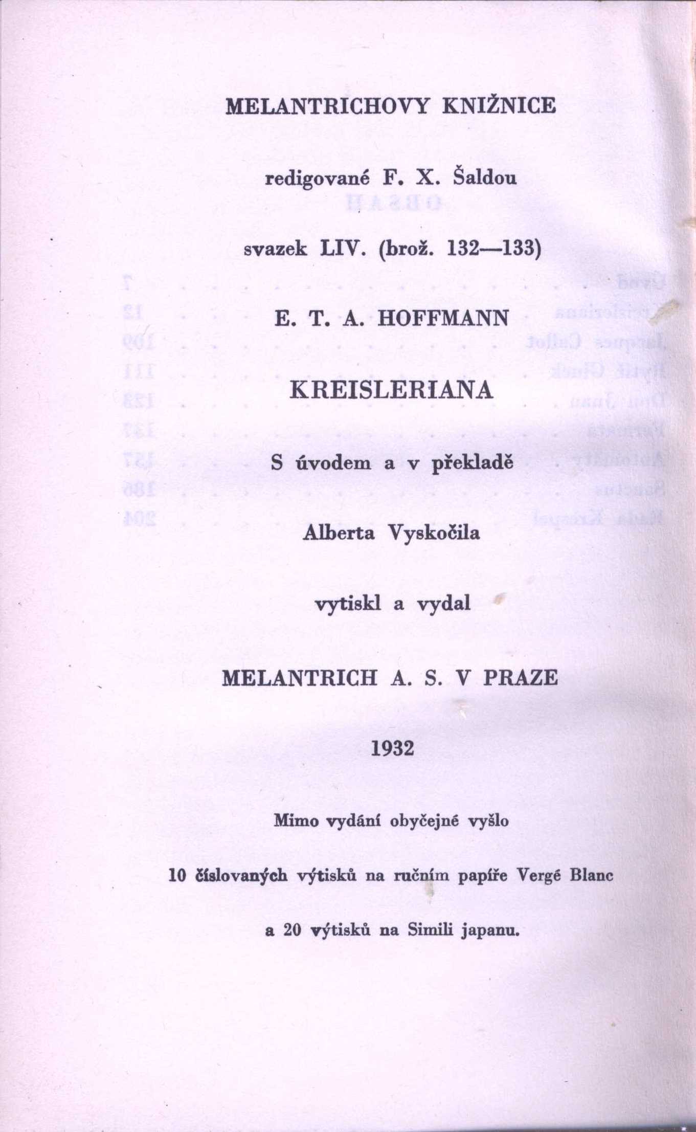 1. Title informationKreisleriana / E. T. A. Hoffmann ; [s úvodem a v překladě Alberta Vyskočila]