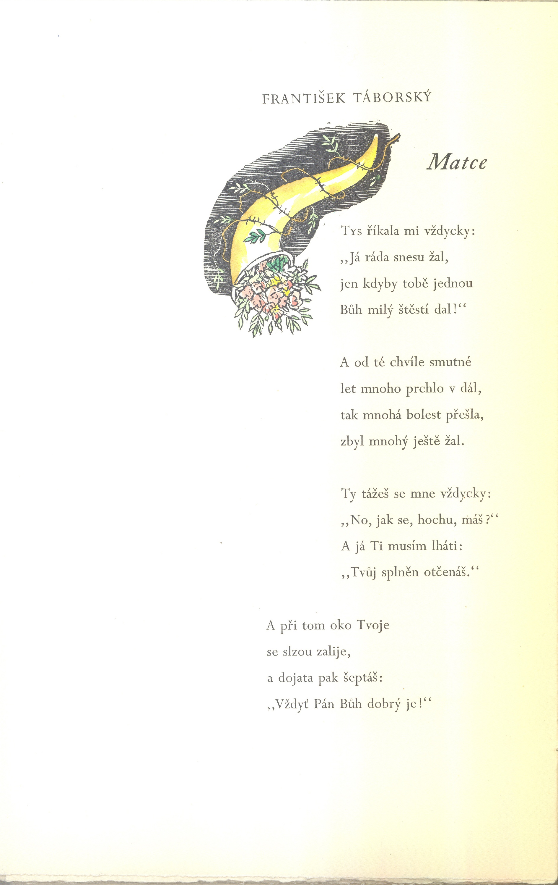 Lis knihomilůvCountry -cs Language Czech Note Bibliofilské nestránkované vydání. - Obálka s ražbou a zlacením. - Titulní list s barevnou značkou. - Ilustrace v textu. - Černobílá obrazová příloha. - Obsah literární a výtvarné části. - Tiráž. - Ochranné pouzdro.