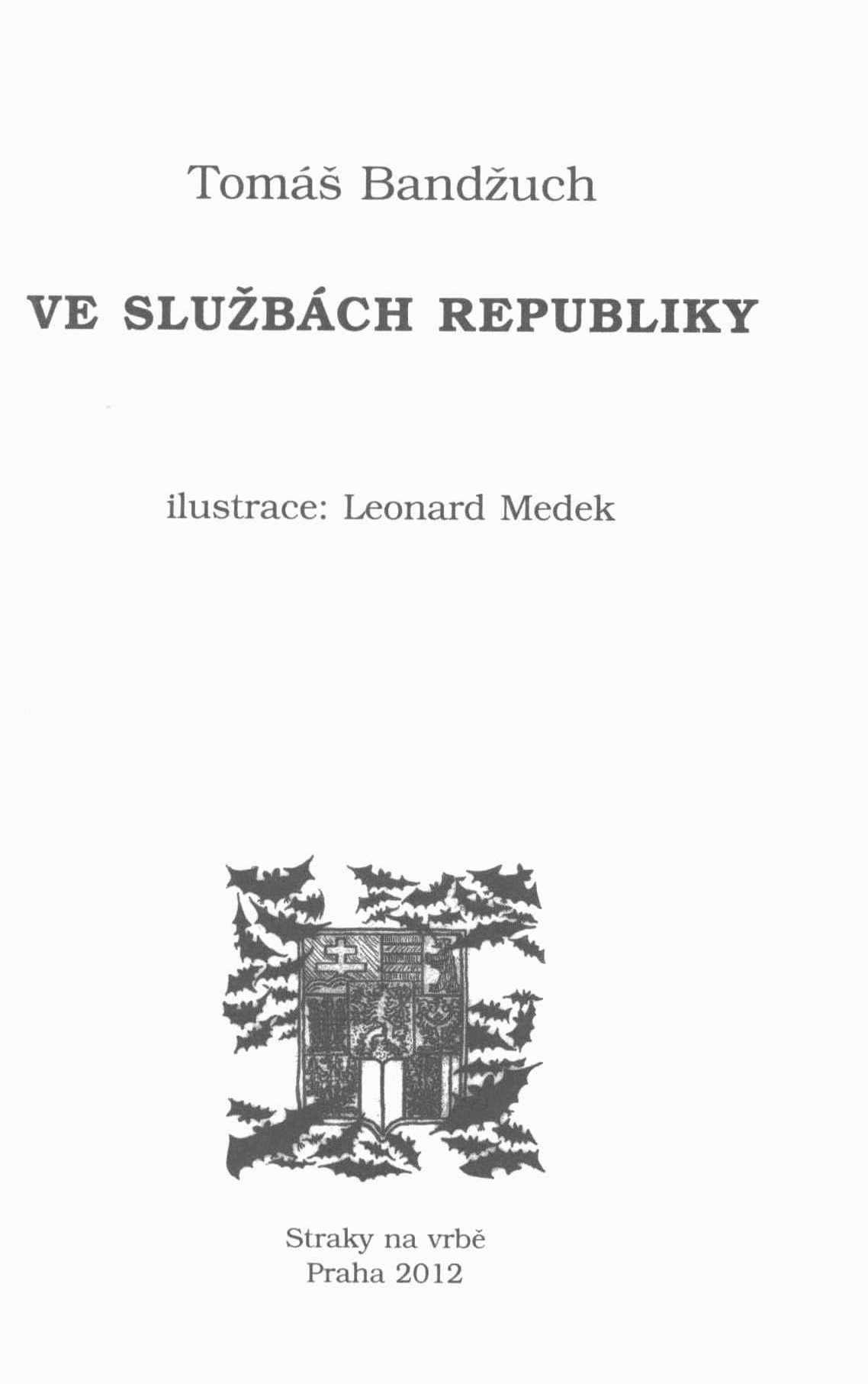 1. Title informationVe službách republiky / Tomáš Bandžuch ; ilustrace Leonard Medek ; [obálka Jiřina Kmínková ; výroba map Tomáš Jajčík ; grafické zpracování obálky Mirek Dvořák]