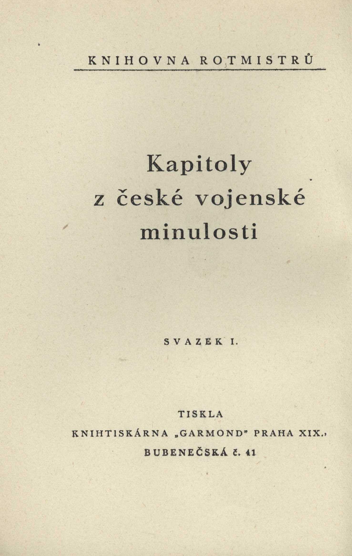 Knihovna rotmistrů (Svaz rotmistrů) Kapitoly z české vojenské minulosti (Svaz rotmistrů)Country Czech Republic Language Czech Note Poznázev z obálky. - Zdobená obálka. - Černobílé ilustrace celostránkové i v textu. - Obsahuje bibliografické odkazy a bibliografie.