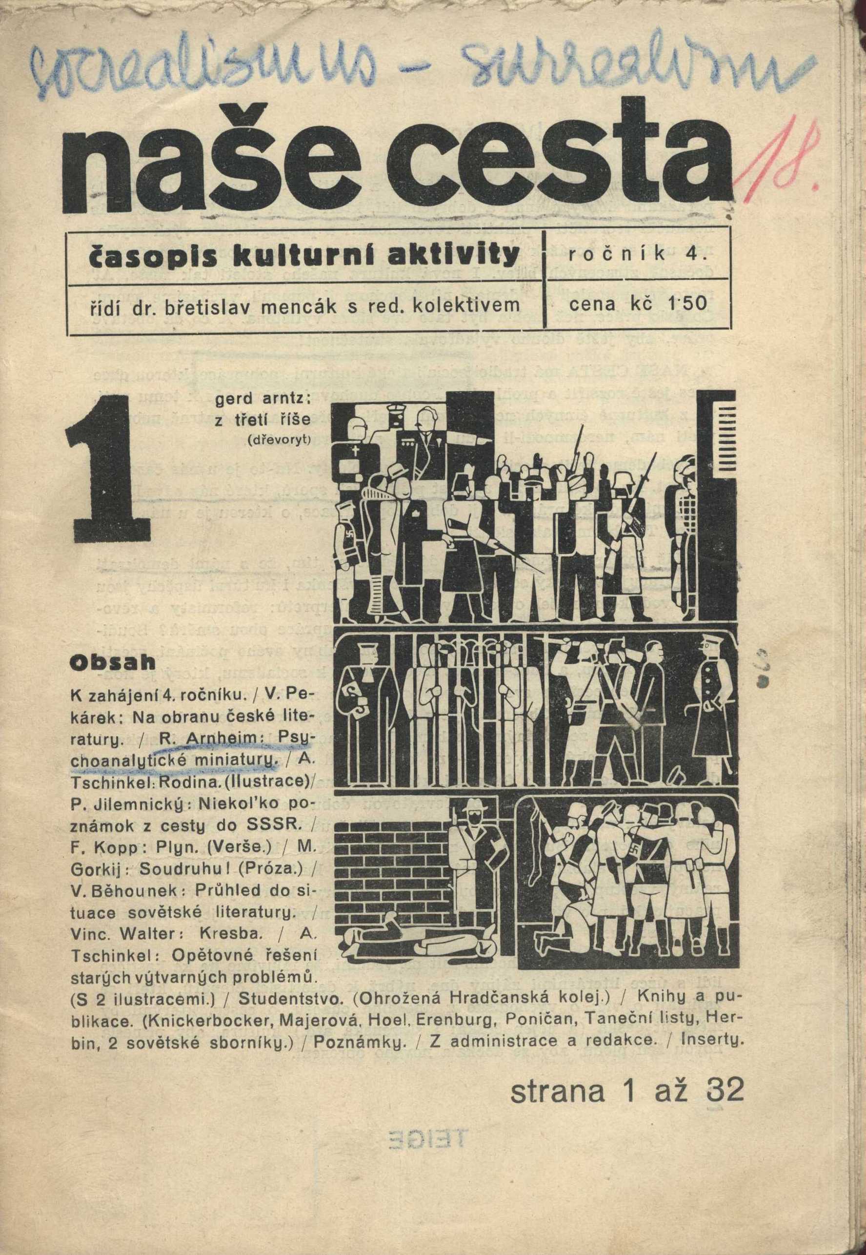 Title information Naše cesta : časopis kulturní aktivity Další autoři Mencák, Břetislav, 1903-1981 (Editor) Roč., číslo ročník 4, číslo 1-5, [1934/1935] Publication Hradec Králové : Sdružení kulturní spolupráce, 1934-1935 Manufacture (J. Oma) Scope il. 160 s. Country Czech Republic Language Czech Note Čb. ilustrace a fotografie.