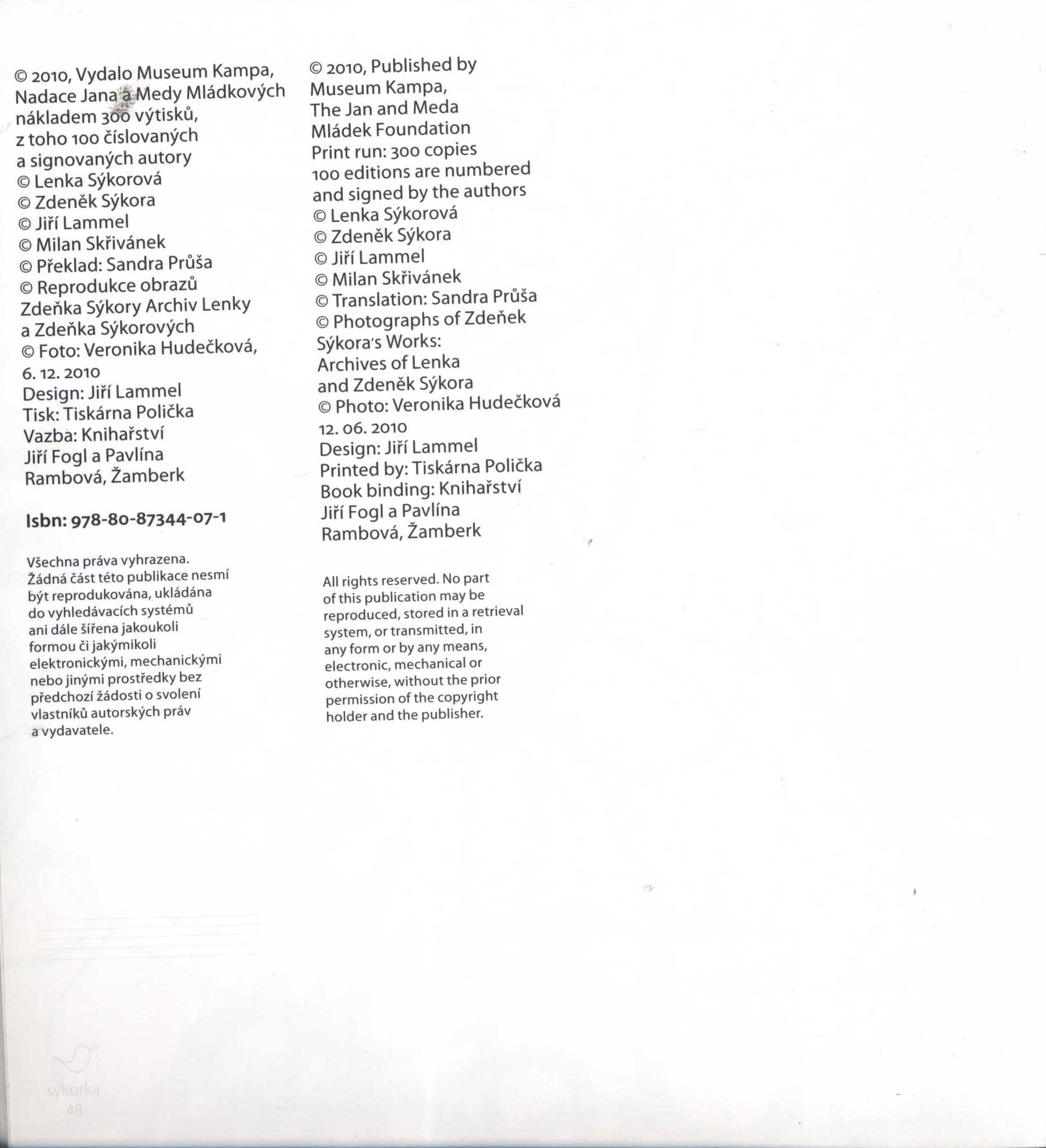 Vydalo Museum Kampa, Nadace Jana a Medy Mládkových nákladem 300 výtisků, z toho 100 číslovaných a signovaných autory