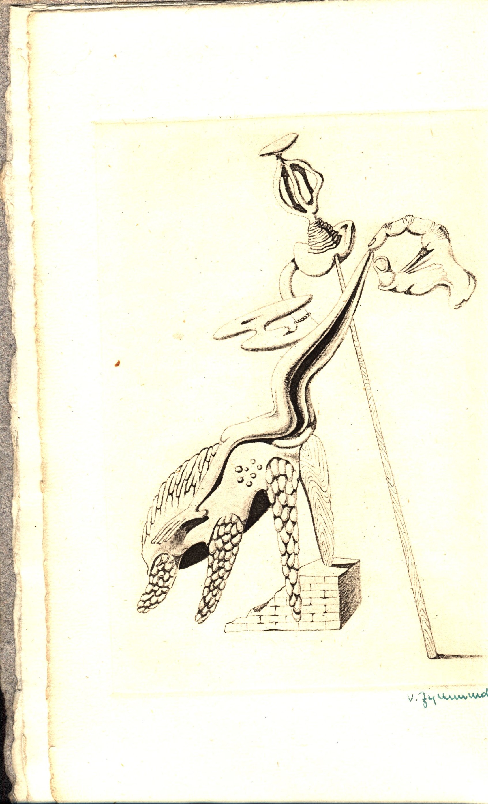 Poznámka o dalších původcíchSignatura Nezval 822: Bibliofilský výtisk na ručním papíře. - Obálka s grafikou V. Zykmunda. - Frontispis a ilustrace V. Zykmunda s jeho vlastnoručním podpisem. - Na vakátě dedikace V. Nezvalovi s podpisy V. Zykmunda, D. Šuberta, B. Laciny z 20 3. 1937. - Z knihovny V. Nezvala. - Výborný stav.