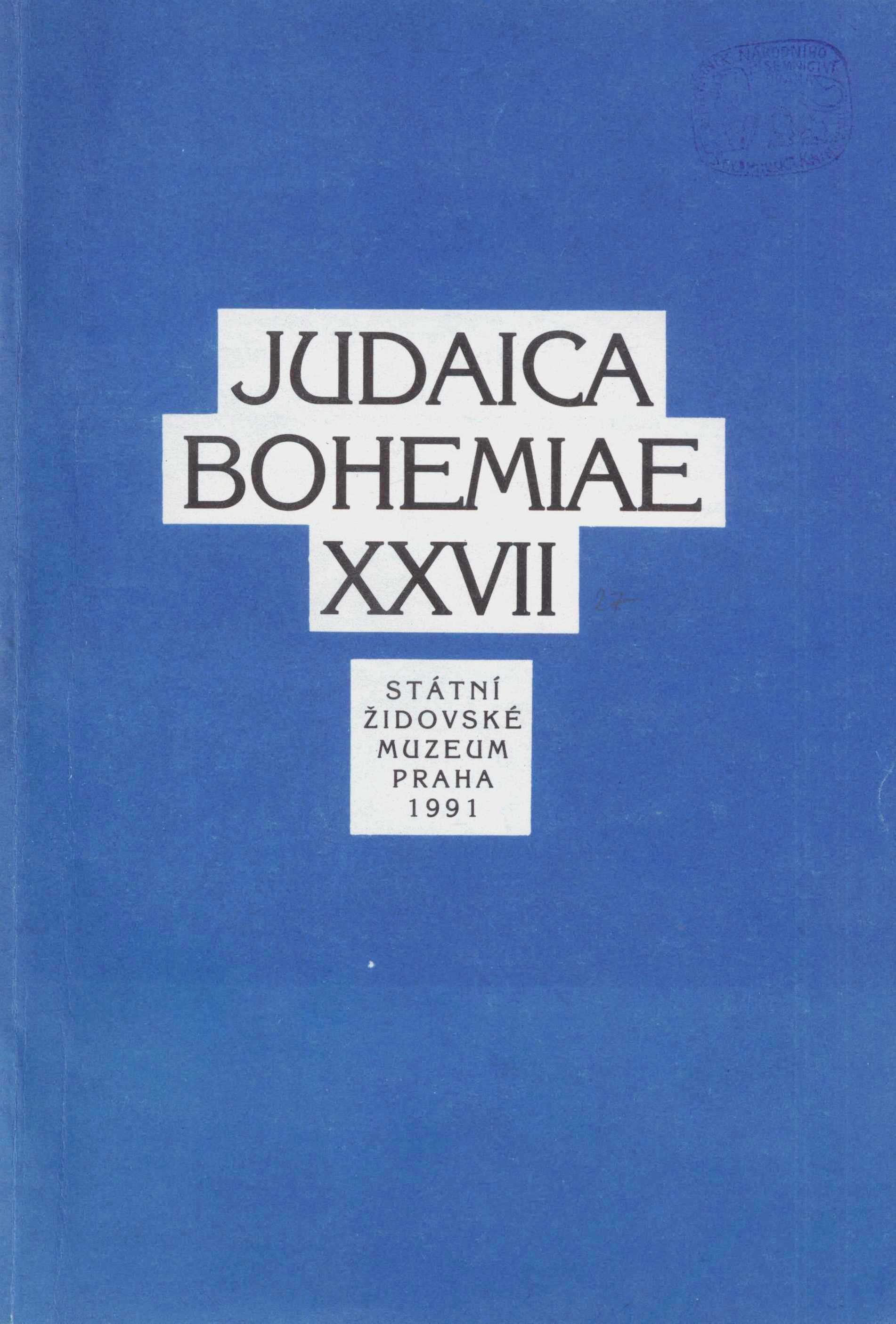 Title information Judaica Bohemiae Další autoři Panorama (nakladatelství a vydavatelství) (Publisher) Státní židovské muzeum (Praha, Česko) (Publisher) Roč., číslo 27/1-2, 1991 Publication Praha : Panorama, 1991 Scope 111 stran, 8 nečíslovaných stran obrazových příloh : ilustrace ; 24 cm ISSN 0022-5738 Country Czech Republic Language English * German * French Note Čb. fotografie v příloze. - Text částečně anglicky, německy a francouzsky