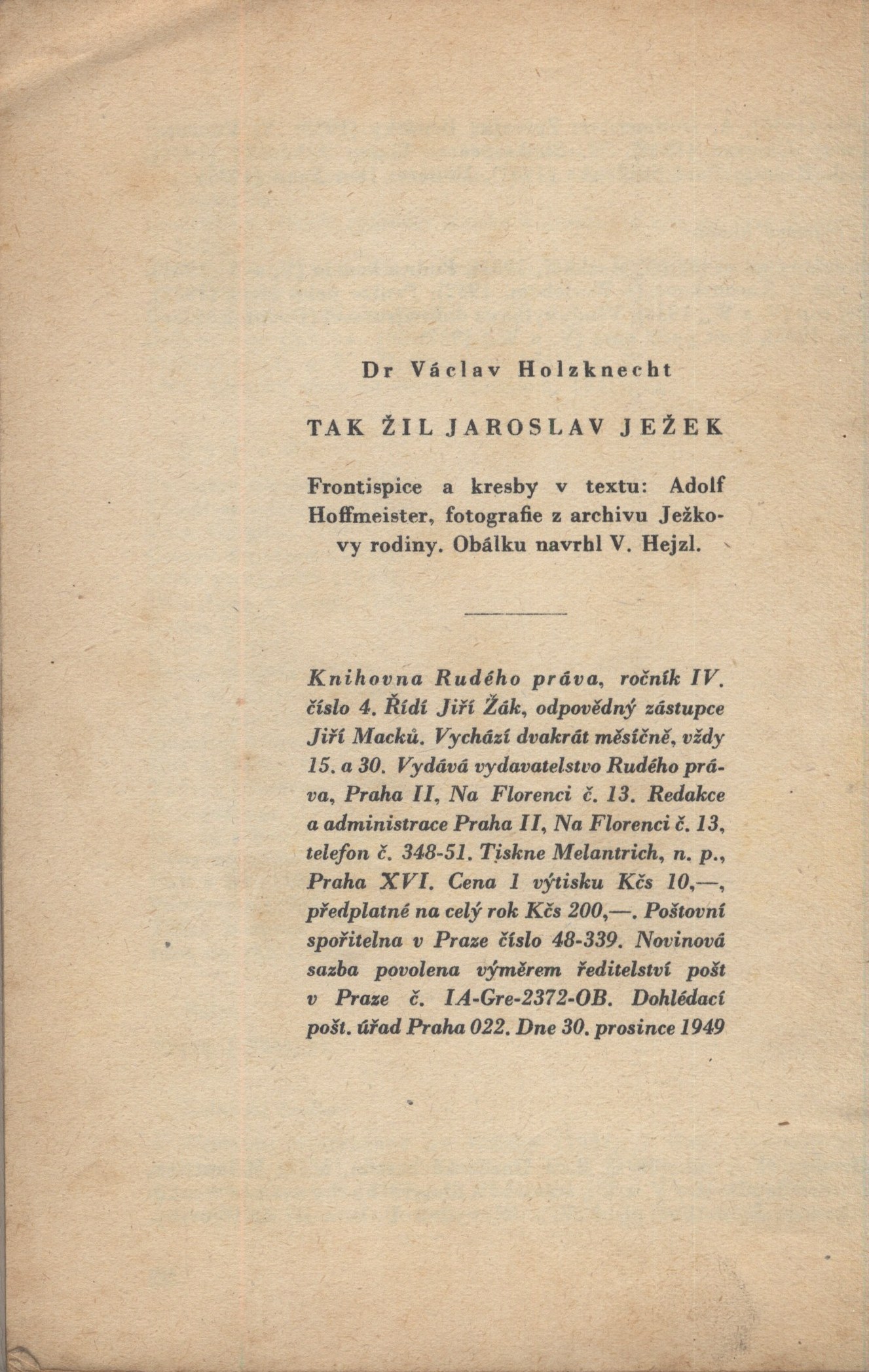 Knihovna Rudého práva (Rudé právo)Country Czech Republic Language Czech Note Obálka s fotografií. - Frontispis. - Titulní list s názvem edice. - Černobílé ilustrace a fotografie. - Dílo J. Ježka. - Tiráž s edicí. - Ediční upoutávky na zadní straně obálky