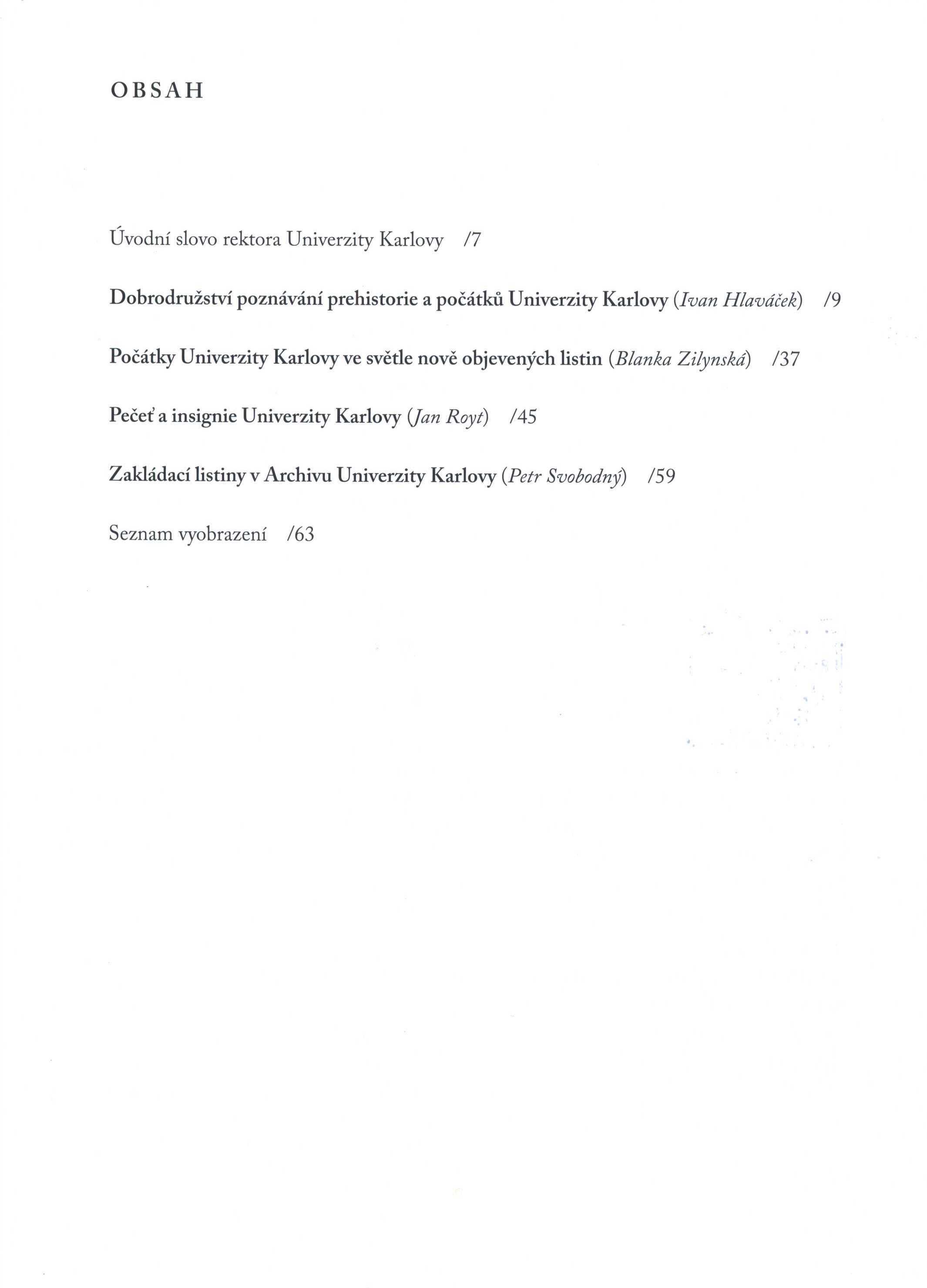 Title information Nejstarší listiny Univerzity Karlovy / Jan Royt (ed.) ; autoři: Ivan Hlaváček, Jan Royt, Petr Svobodný, Blanka Zilynská ; předmluva Tomáš Zima ; fotogarfie Vladimír Šigut, Milan Posselt a Oto Palán, René Volfík Personal name Hlaváček, Ivan, 1931- (Author) Další autoři Royt, Jan, 1955- (Author) (Editor) Svobodný, Petr, 1958- (Author) Zilynská, Blanka, 1956- (Author) Zima, Tomáš, 1966- (Author of introduction) Šigut, Vladimír, 1985- (Bookjacket designer) (Photographer) Posselt, Milan, 1942- (Photographer) Palán, Oto, 1964- (Photographer) Volfík Šramota, René, 1971- (Photographer) Ziegler, Zdeněk, 1932-2023 (Book designer) Kalivoda, Jan, 1952- (Other) Corporation Karolinum (nakladatelství, tiskárna) (Publisher) Těšínské papírny, s.r.o. (tiskárna) (Printer) Edition statement Vydání první Publication Praha : Univerzita Karlova, Nakladatelství Karolinum, 2018 Manufacture Český Těšín : Těšínské papírny, s. r. o. Scope 62 stran : barevné ilustrace, faksimile ; 26 cm ISBN 978-80-246-4175-1 (brožováno) Country Czech Republic Language Czech * Latin Language of the original Czech * Latin Note Obálka s detailem buly papeže Klimenta VI. z r. 1347. - Na přední záložce pokračuje faksimile buly, na zadní anotace knihy. - Barevná vazba s drobnou černobílou ilustracía a s dvoubarevným textem. - Znak Univerzity Karlovy na vakátě. - Frontispis (detail papežské pečetě). - Dvoubarevný text na titulním listu. - Obsah. - Předmluva T. Zimy. - Texty. - Barevné fotografie s popisky. - Některé listy rozkládací. - Seznam vyobrazení. - Přebal.