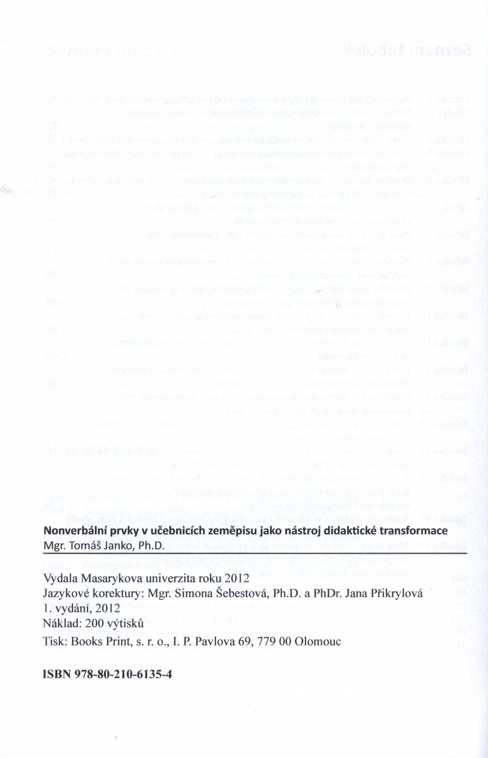 Title information Nonverbální prvky v učebnicích zeměpisu jako nástroj didaktické transformace / Tomáš Janko Personal name Janko, Tomáš, 1983- (Author) Edition statement 1. vydání Publication Brno : Masarykova univerzita, 2012 Manufacture Olomouc : Books Print, s.r.o. Scope 145 stran : ilustrace ; 23 cm ISBN 978-80-210-6135-4 (brožováno) Edition Pedagogický výzkum v teorii a praxi ; svazek 30