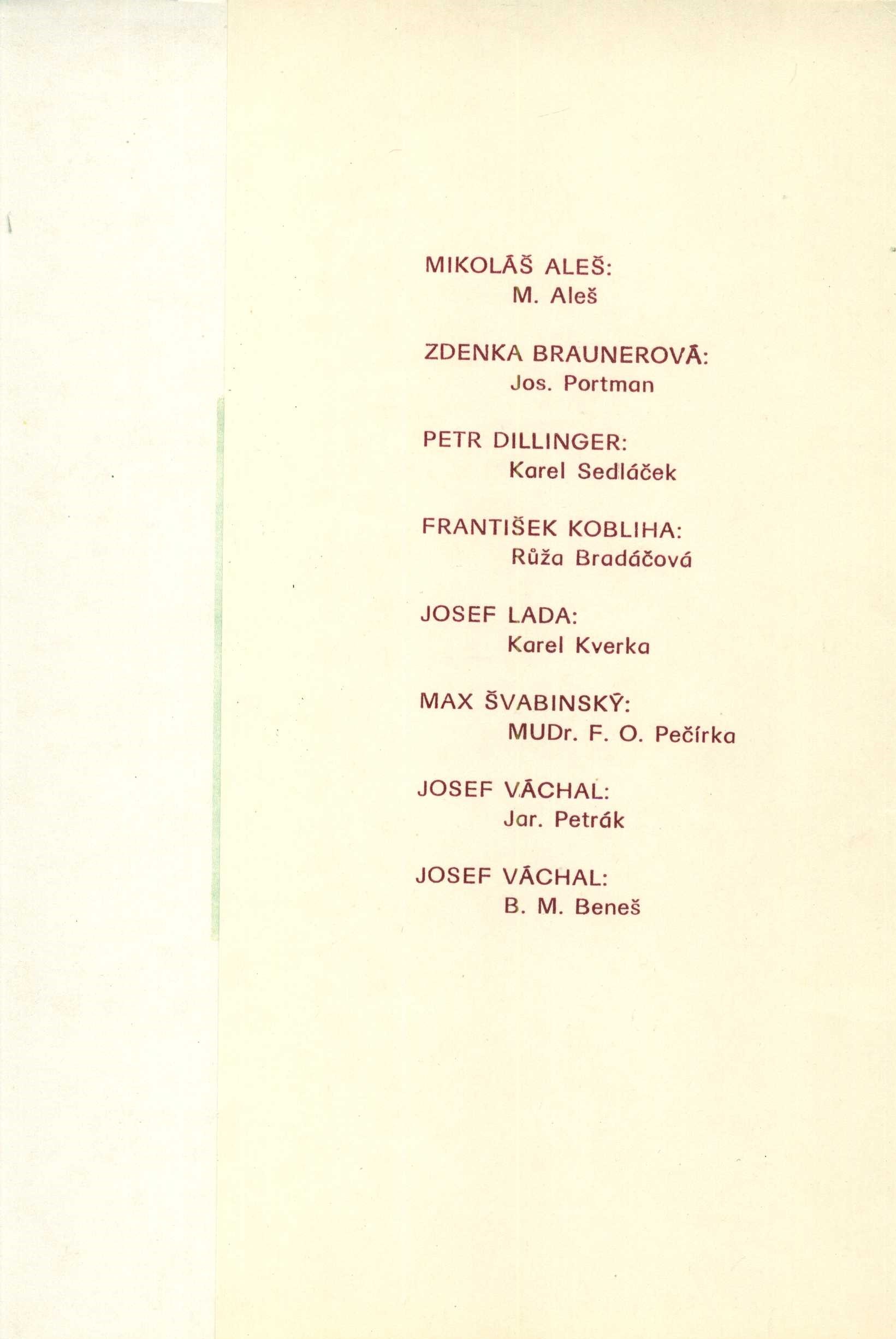 Title information Ex libris ze sbírek Uměleckoprůmyslového muzea v Praze : Mikoláš Aleš, Zdenka Braunerová, Petr Dillinger, František Kobliha, Josef Lada, Max Švabinský, (2x) Josef Váchal Personal name Aleš, Mikoláš, 1852-1913 (Artist) (Illustrator) Další autoři Braunerová, Zdenka, 1858-1934 (Artist) (Illustrator) Dillinger, Petr, 1899-1954 (Artist) (Illustrator) Kobliha, František, 1877-1962 (Artist) (Illustrator) Lada, Josef, 1887-1957 (Artist) (Illustrator) Švabinský, Max, 1873-1962 (Artist) (Illustrator) Váchal, Josef, 1884-1969 (Artist) (Illustrator) Corporation Uměleckoprůmyslové museum (Praha, Česko) Manufacture [Praha] : Uměleckoprůmyslové muzeum, [197-?] Scope 8 nečíslovaných listů : barevné ilustrace ; 21 cm ISBN (Volné listy) Country Czech Republic Language Czech Note Název z obálky