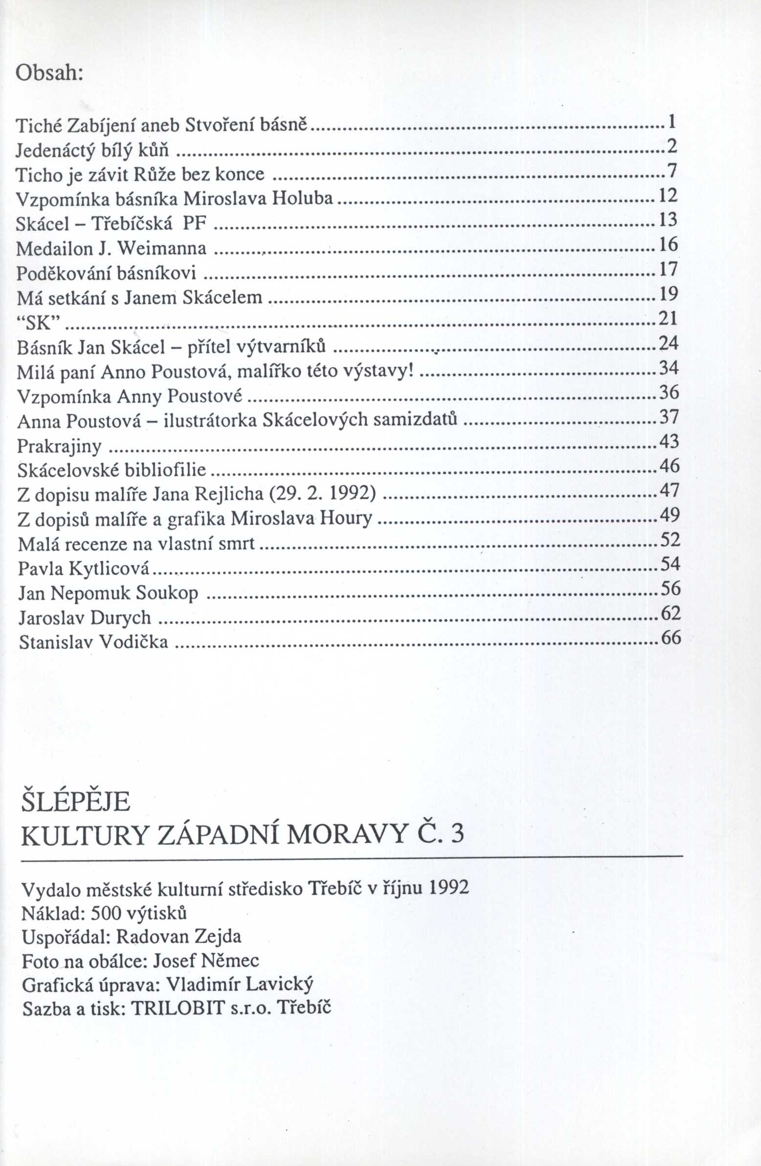 Note Název z obálky. - Na obálce: Literární klub Třebíč. - Čb. fotografie, portréty, ilustrace, faksimile. - Vydáno v říjnu 1992. - 500 výtisků
