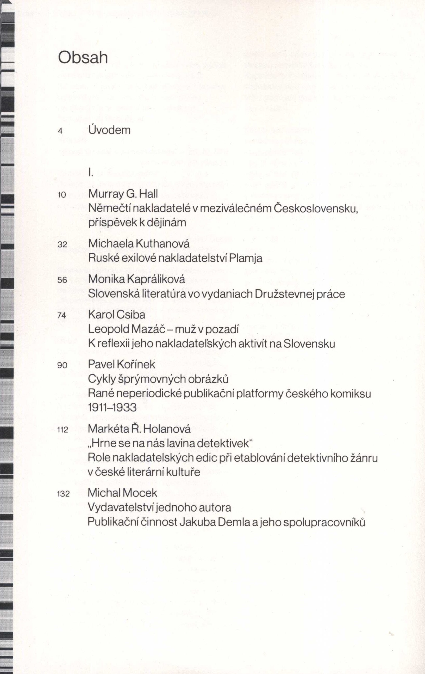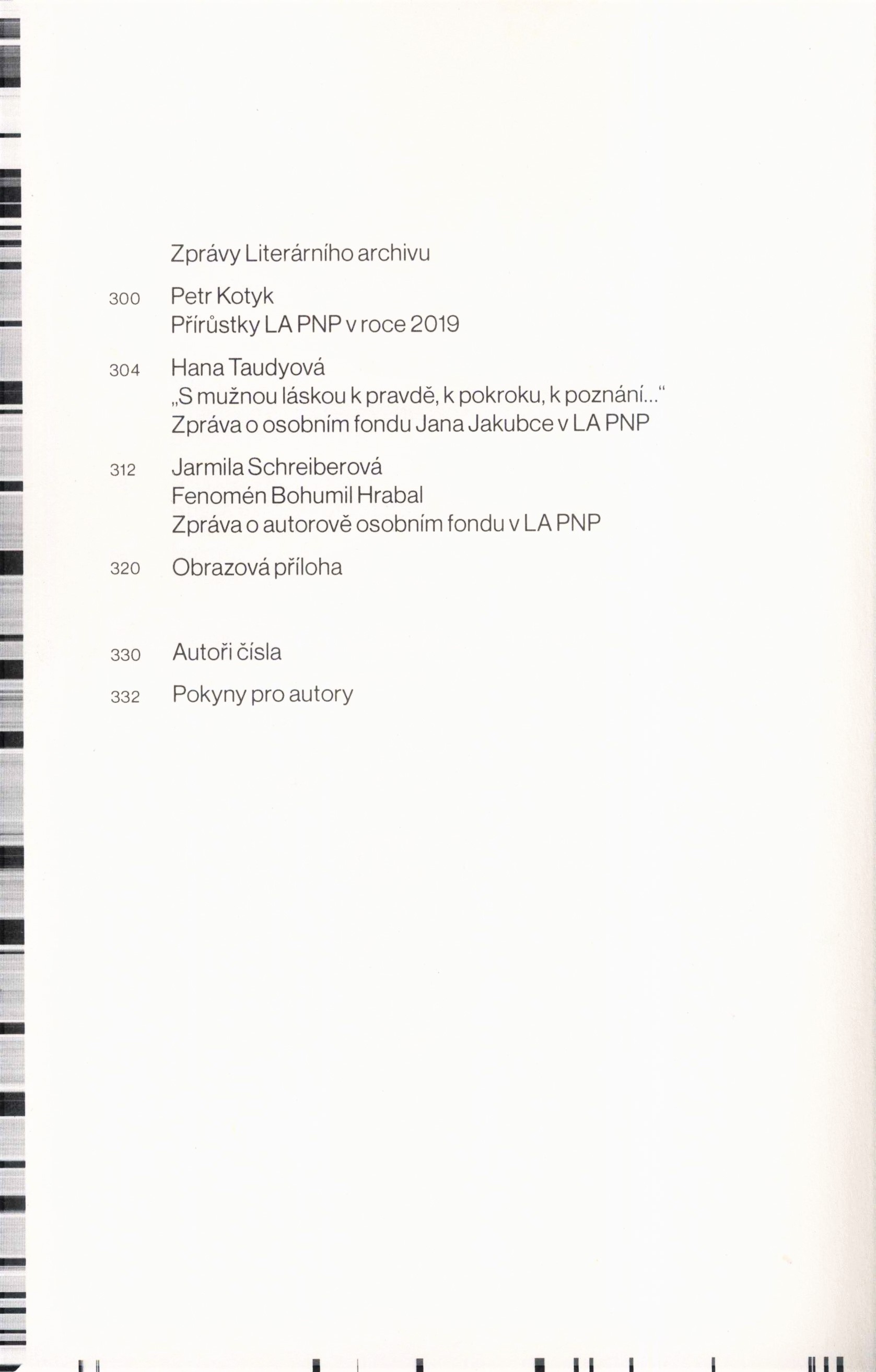 Title information Literární archiv : sborník Památníku národního písemnictví = Jahrbuch des Museums der tschechischen Literatur = Annual of the Museum of Czech Literature = Almanach du Musée de la littérature tchèque. Nakladatelství 1918-1949. Mezi okrajem a centrem Další autoři Sudzinová, Tereza, 1991- (Publishing director) Worthington, Mark, 1966- (Translator) Corporation Památník národního písemnictví (muzeum literatury) (Publisher) Indigoprint (tiskárna) (Printer) Roč., číslo 52, 2020 Edition statement Vydání první Publication Praha : Památník národního písemnictví, 2020 Manufacture Indigoprint Scope 336 stran : ilustrace, fotografie, portréty, faksimile ; 23 cm ISBN 978-80-87376-76-8 (brožováno) ISSN 0231-5904 Country Czech Republic Language Czech * Slovak Note Fialová typografická obálka se slepotiskem. - Zdobená ořízka. - Čb. i barevné ilustrace, fotografie, portréty a faksimile. - Text částečně slovensky. - Seznam autorů. - 300 výtisků