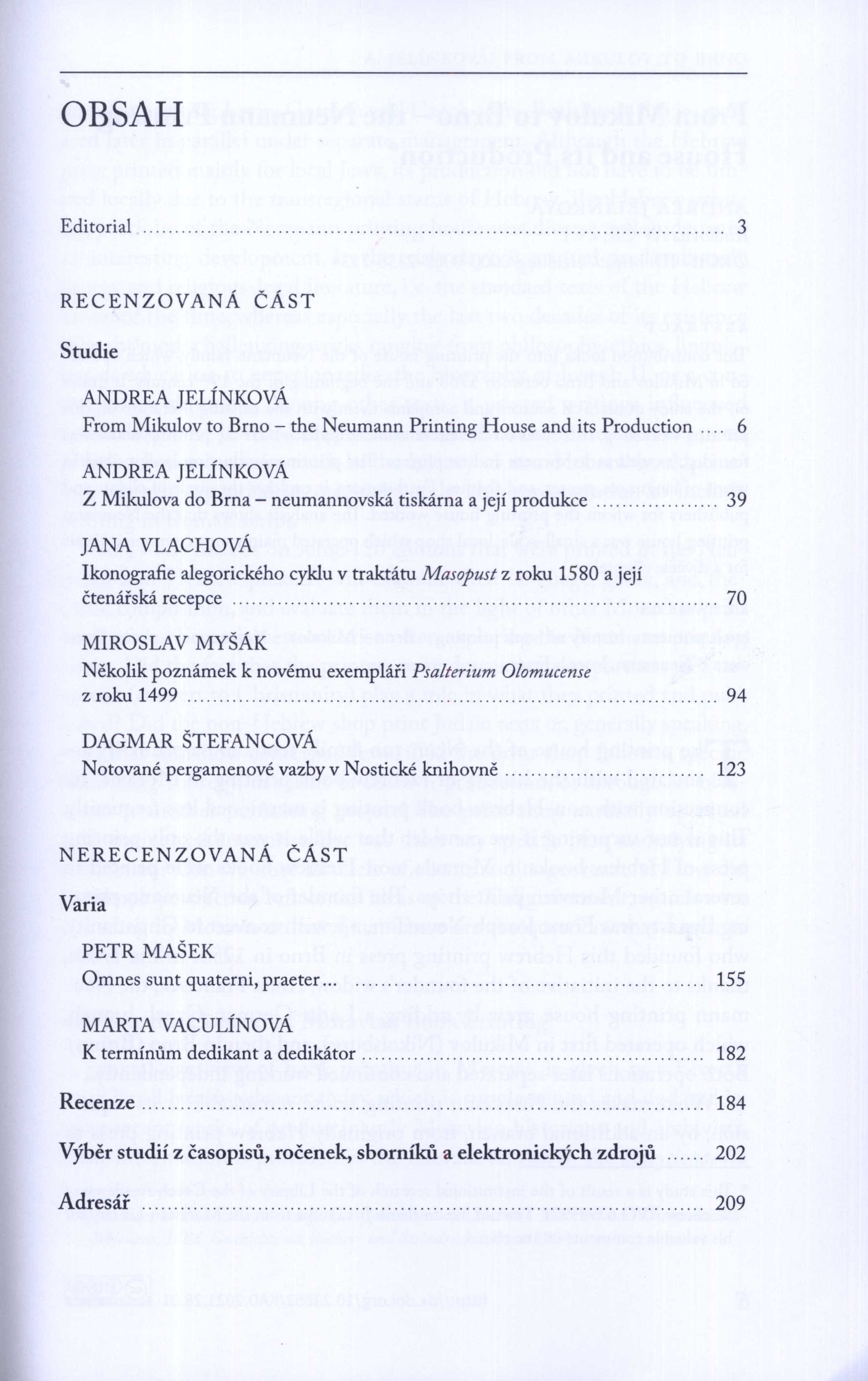 Title information Knihy a dějiny Další autoři Veselá-Prudková, Lenka, 1975- (Publishing director) Jůna, David (Book designer) Corporation Akademie věd České republiky. Knihovna (Publisher) Roč., číslo Ročník 28, číslo 1-2, 2021 Publication Praha : Knihovna AV ČR, v. v. i., 2021 Scope 209 stran : faksimile ; 24,5 cm ISSN 1210-8510 Country Czech Republic Language Czech * English Note Čb. i barevné faksimile. - Částečně souběžný anglický text. - Anglická resumé