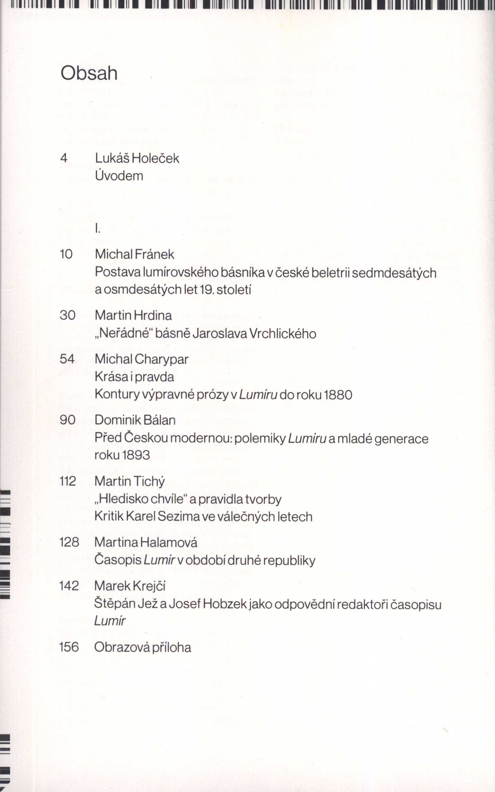 Title information Literární archiv : sborník Památníku národního písemnictví = Jahrbuch des Museums der tschechischen Literatur = Annual of the Museum of Czech Literature = Almanach du Musée de la littérature tchèque. Tradice Lumíru 1851-1940 / editor Lukáš Holeček Další autoři Holeček, Lukáš, 1985- (Editor) Sudzinová, Tereza, 1991- (Publishing director) Paton, Derek, 1958- (Translator) Corporation Památník národního písemnictví (muzeum literatury) (Publisher) Indigoprint (tiskárna) (Printer) Roč., číslo 54, 2022 Edition statement Vydání první Publication Praha : Památník národního písemnictví / Muzeum literatury, 2022 Manufacture Indigoprint Scope 386 stran : ilustrace, fotografie, portréty, faksimile ; 22,5 cm ISBN 978-80-87376-97-3 (brožováno) ISSN 0231-5904 Country Czech Republic Language Czech Note Barevná typografická obálka se slepotiskem. - Zdobená ořízka. - Čb. i barevné ilustrace, fotografie, portréty a faksimile. - Seznam autorů. - 300 výtisků