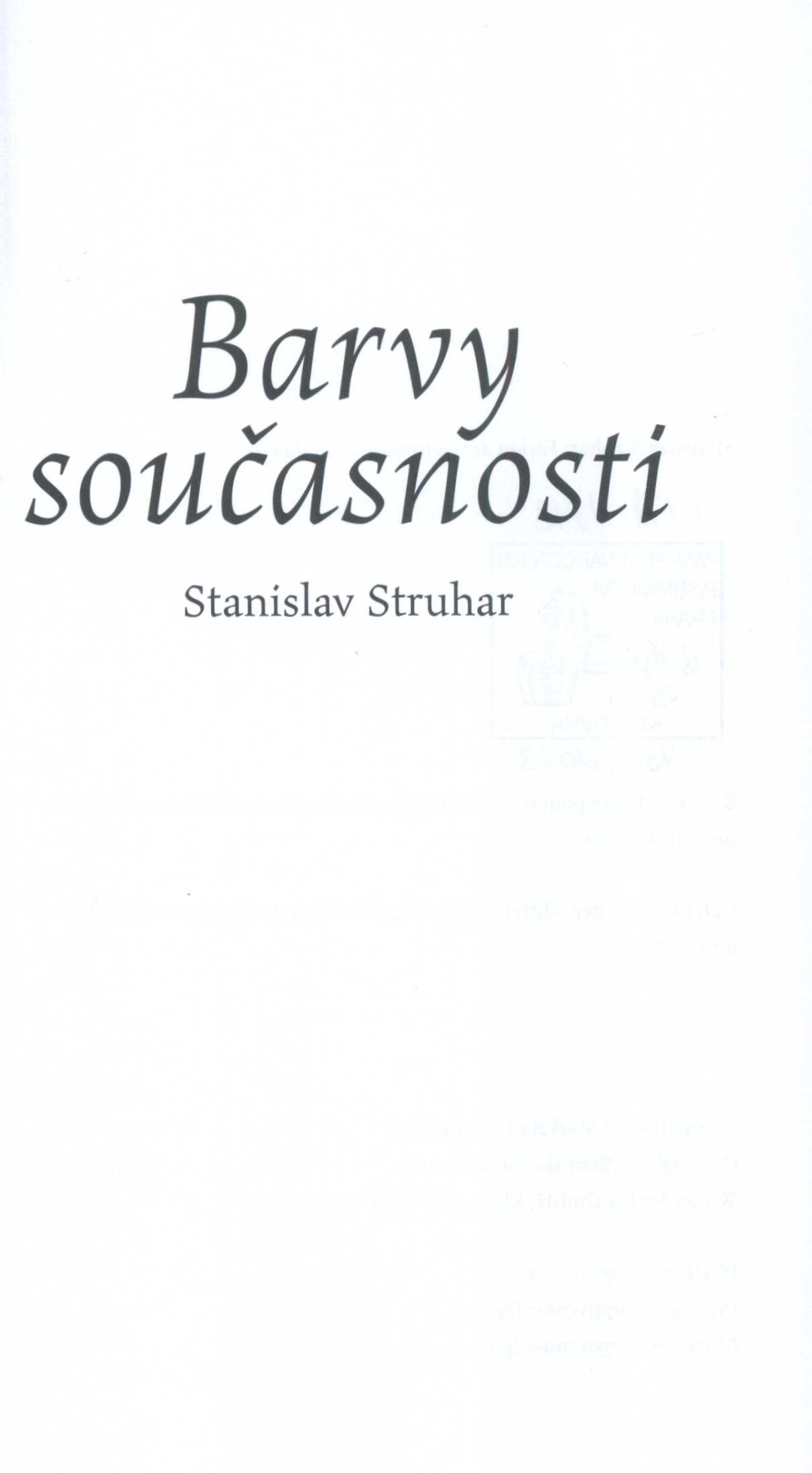 Title information Barvy současnosti / Stanislav Struhar ; přeložila Markéta Kliková ; sazba a obálka s použitím fotografie Stanislava Struhara Michael Romanovský ; doslov Gabriela Šilhavá Personal name Struhar, Stanislav, 1964- (Author) (Photographer) Uniform title Farben der Gegenwart. Česky Další autoři Kliková, Markéta, 1986- (Translator) Romanovský, Michael, 1981- (Compositor) (Bookjacket designer) Šilhavá, Gabriela, 1993- (Author of afterword, colophon, etc.) Corporation Volvox Globator (nakladatelství) (Publisher) Finidr (tiskárna) (Printer) Edition statement Vydání první Publication Praha : Volvox Globator, 2022 Manufacture [Český Těšín] : Finidr, s.r.o. Scope 109 stran ; 21 cm ISBN 978-80-7511-717-5 (vázáno) Country Czech Republic Language Czech Language of the original German Note Obálka s tónovanou fotografií, černý text (i na hřbetu). - Na přední záložce anotace knihy a obsahy povídek, na zadní stručná biografie autora. - Bílá, graficky zdobená, vazba s černým textem (i na hřbetu). - Povídky. - Doslov "Barvy života" G. Šilhavá. - O autorce doslovu. - Obsah. - Přebal.