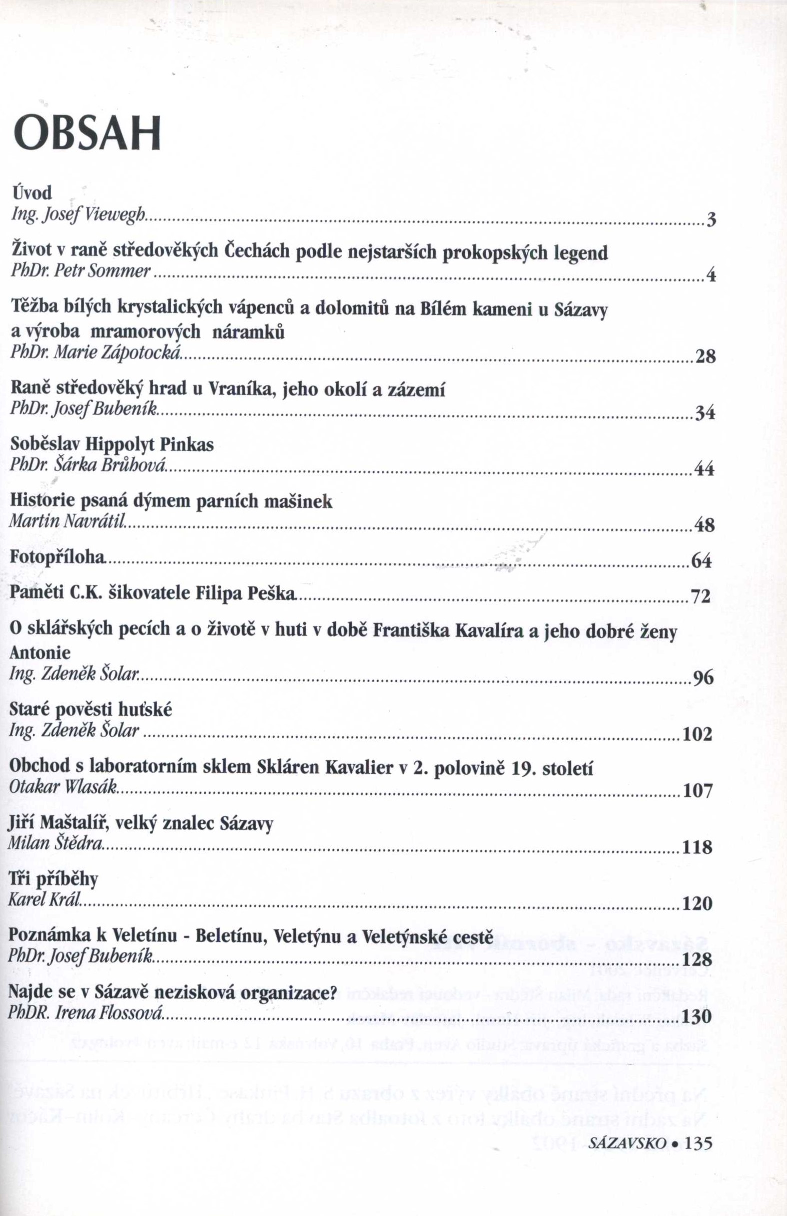 Title information Sázavsko : historie tradice současnost : sborník Roč., číslo 8, 2001 Publication Sázava : [Město Sázava], 2001 Scope 135 stran : fotografie, portréty, ilustrace, mapky ; 21 cm ISBN (Brožováno) Country Czech Republic Language Czech Note Zdobená barevná obálka. - Černobílé fotografie, portréty, ilustrace a mapky