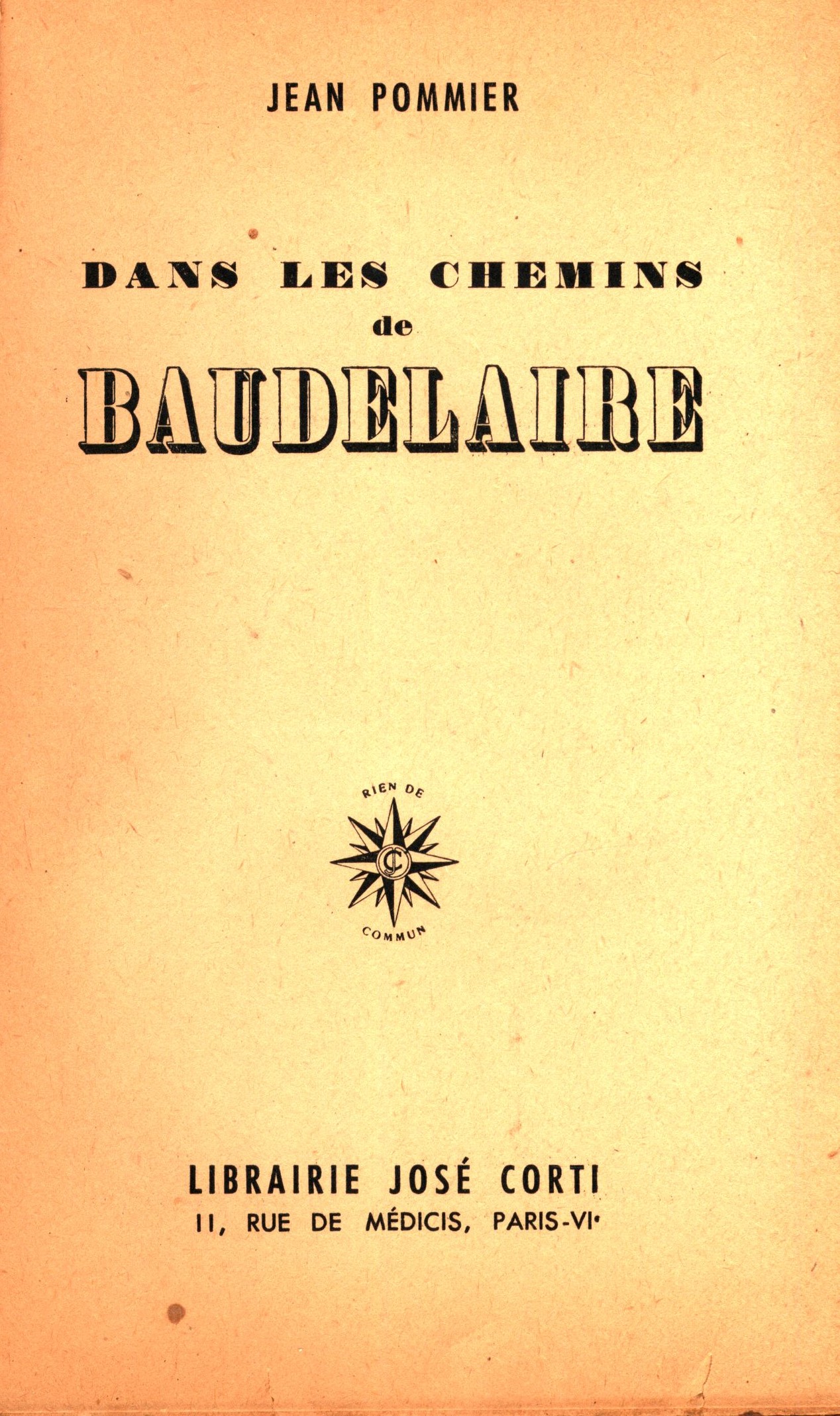 Title information Dans les chemins de Baudelaire / Jean Pommier Personal name Pommier, Jean, 1893-1973 (Author) Další autoři José Corti (firma) (Publisher) Imprimerie Aubin (Ligugé, Francie) (Printer) Publication Paris : Librairie José Corti, 1945 Manufacture Ligugé : Imprimerie E. Aubin et fils. Scope 384 stran ; 19 cm ISBN (vázáno) Country France Language French Note Barevná zdobená obálka. - Na frontispisu soupis děl autora. - Tištěné poznámky pod čarou. - Rejstřík.