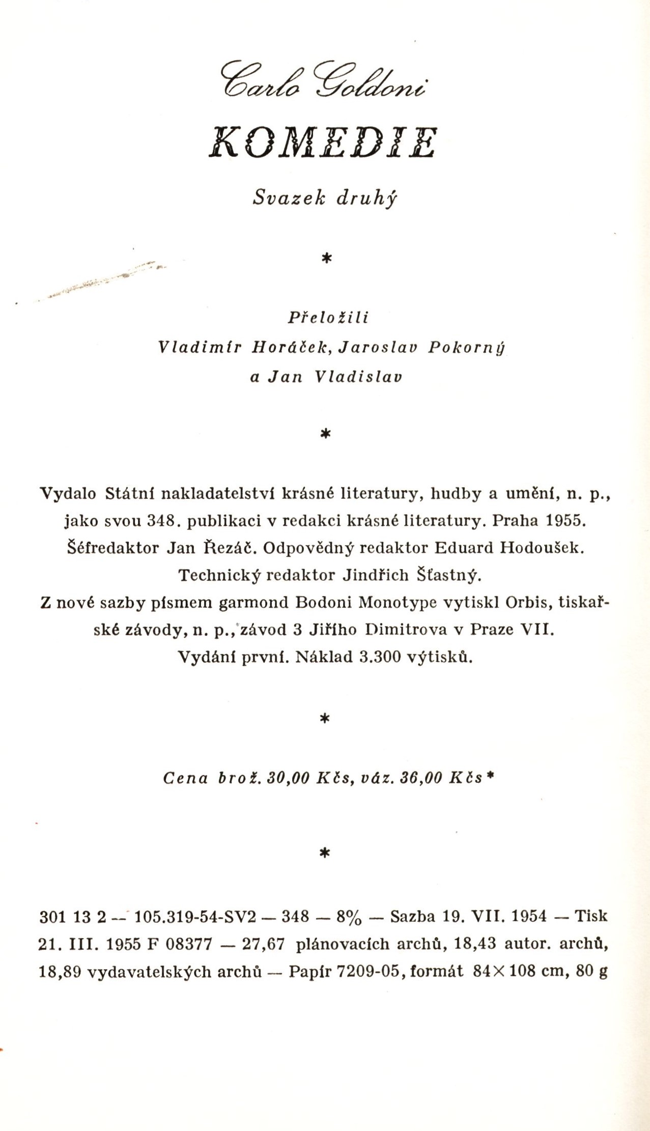 1. Title informationKomedie. Svazek druhý / Carlo Goldoni ; z italských originálů přeložili Vladimír Horáček, Jaroslav Pokorný a Jan Vladislav