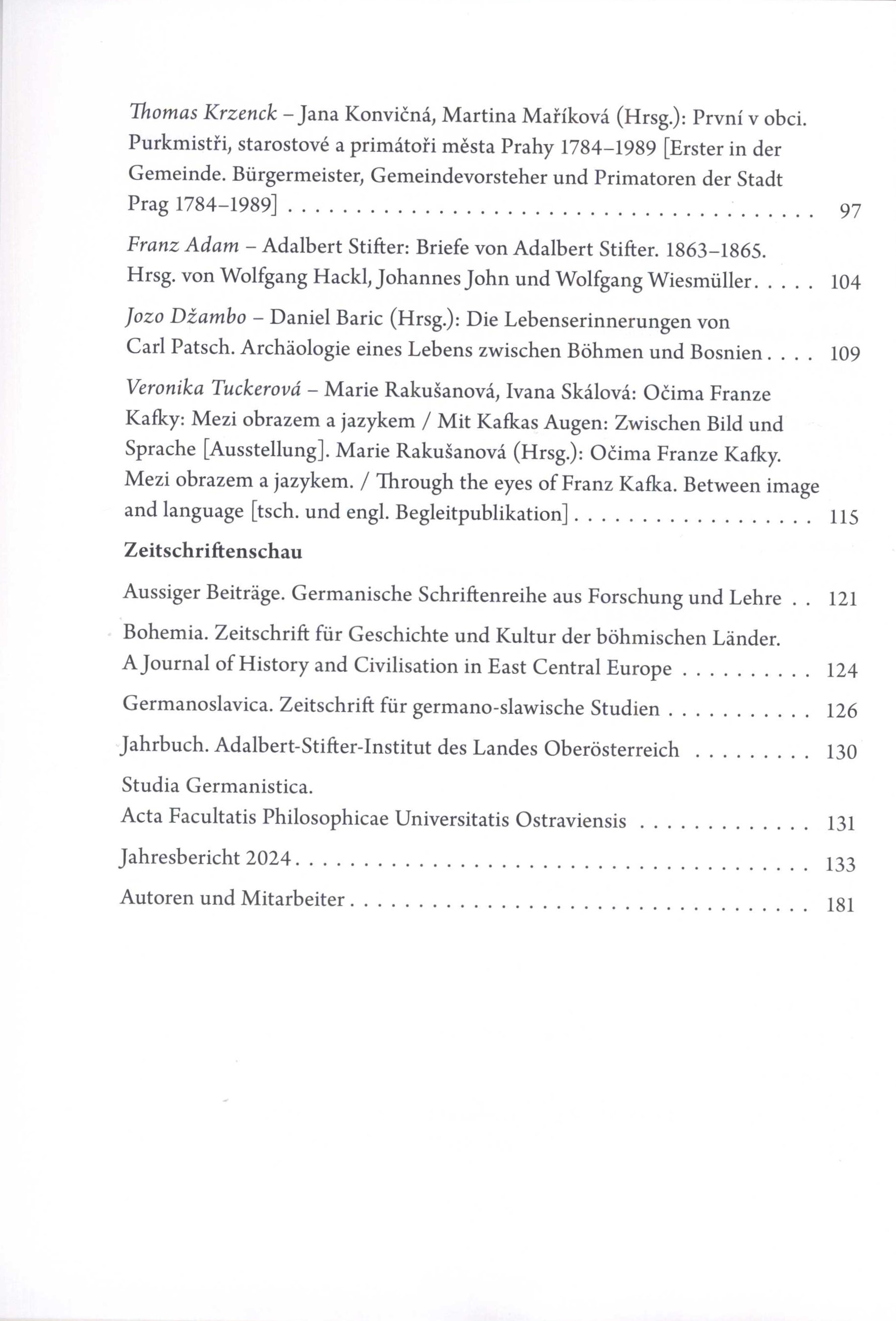 Title information Stifter Jahrbuch. Neue Folge Další autoři Mayer, Franziska (Publishing director) Corporation Adalbert Stifter Verein (Mnichov, Německo) (Publisher) Roč., číslo 38, 2024 Publication München : Adalbert Stifter Verein, [2025] Copyright notice date ©2025 Scope 182 stran : fotografie, portréty, ilustrace ; 23 cm ISBN 978-3-940098-25-2 (brožováno) Country Germany Language German Note Převážně černobílé fotografie, portréty a ilustrace. - Seznam autorů.