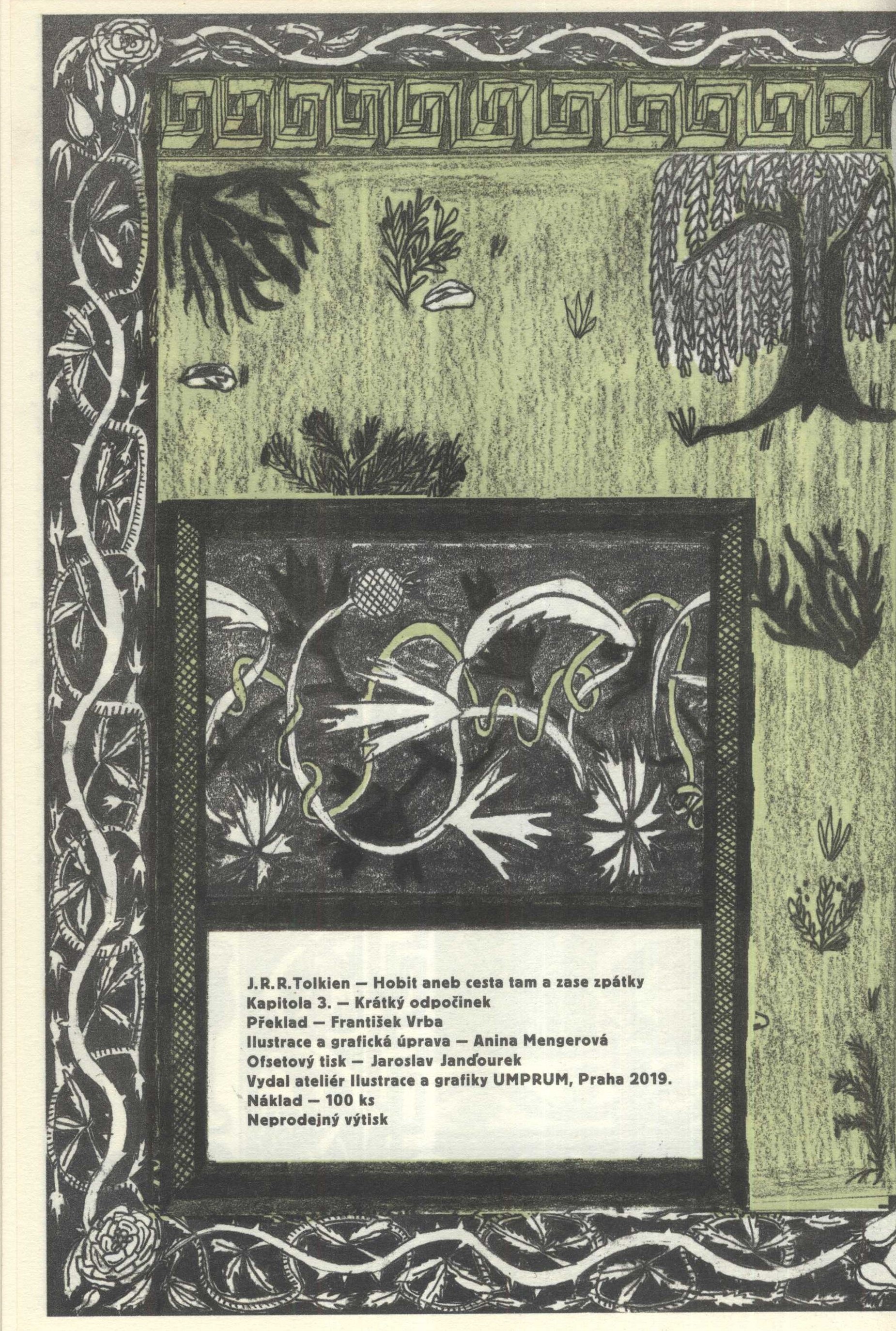 Title information Hobit, aneb, Cesta tam a zase zpátky / J.R.R. Tolkien ; ilustrace a grafická úprava Vítězslav Mecner, Dávid Valovič, Anna Mengerová, Kristina Fingerlandová, David Doilenský, Karla Gondeková, Kotone Utsunomiya, Barbora Satranská, Jakub Plachý, Kateřina Volfová, Jakub Bachorík, Katka Kozáková, María Andrea Miranda Serna, Ferm Kallenbach Campbell, Petr Polák, David Kukoľ, Ema Moriya, Tereza Šiklová, Darjan Hardi ; vazba, předsádky, titulní list: David Kukoľ ; překlad František Vrba Personal name Tolkien, J. R. R. (John Ronald Reuel), 1892-1973 (Author) Další autoři Mecner, Vítězslav, 1998- (Illustrator) (Book designer) Valovič, Dávid, 1995- (Illustrator) (Book designer) Mengerová, Anna, 1994- (Illustrator) (Book designer) Fingerlandová, Kristina, 1991- (Illustrator) (Book designer) Dolenský, David, 1993- (Illustrator) (Book designer) Gondeková, Karla, 1993- (Illustrator) (Book designer) Utsunomiya, Kotone, 1995- (Illustrator) (Book designer) Satranská, Barbora, 1997- (Illustrator) (Book designer) Plachý, Jakub, 1989- (Illustrator) (Book designer) Kallenbach Campbell, Fern, 1995- (Illustrator) (Book designer) Volfová, Kateřina, 1996- (Illustrator) (Book designer) Bachorík, Jakub, 1994- (Illustrator) (Book designer) Kozáková, Kateřina, 1995- (Illustrator) (Book designer) Serna, María Andrea Miranda, 1991- (Illustrator) (Book designer) Polák, Petr (Illustrator) Kukoľ, David, 1999- (Illustrator) (Book designer) (Binder) Moriya, Ema, 1991- (Illustrator) (Book designer) Šiklová, Tereza, 1996- (Illustrator) (Book designer) Hardi, Darjan, 1994- (Illustrator) (Book designer) Vrba, František, 1920-1985 (Translator) Janďourek, Jaroslav, 1958- (Printer) Řebec, René, 1969- (Printer) Corporation UMPRUM (Praha). Ateliér ilustrace a grafiky (Publisher) Publication Praha : ateliér Ilustrace a grafiky UMPRUM, 2019 Scope 474 stran, 20 nečíslovaných stran : ilustrace ; 24 cm ISBN (Vázáno) Country Czech Republic Language Czech Note Zelená plátěná vazba, černá ilustrace, černý text (i na hřbetu). - Černé barevně ilustrované předsádky. - Frontispis. - Úvodní list každé kapitoly (autor, název, název kapitoly, ilustrátor). - Různobarevný text, barevné ilustrace (drobné i celostránkové). - Na konci každé kapitoly tiráž. - Na konci knihy tiráž s údaji pro celou knihu.
