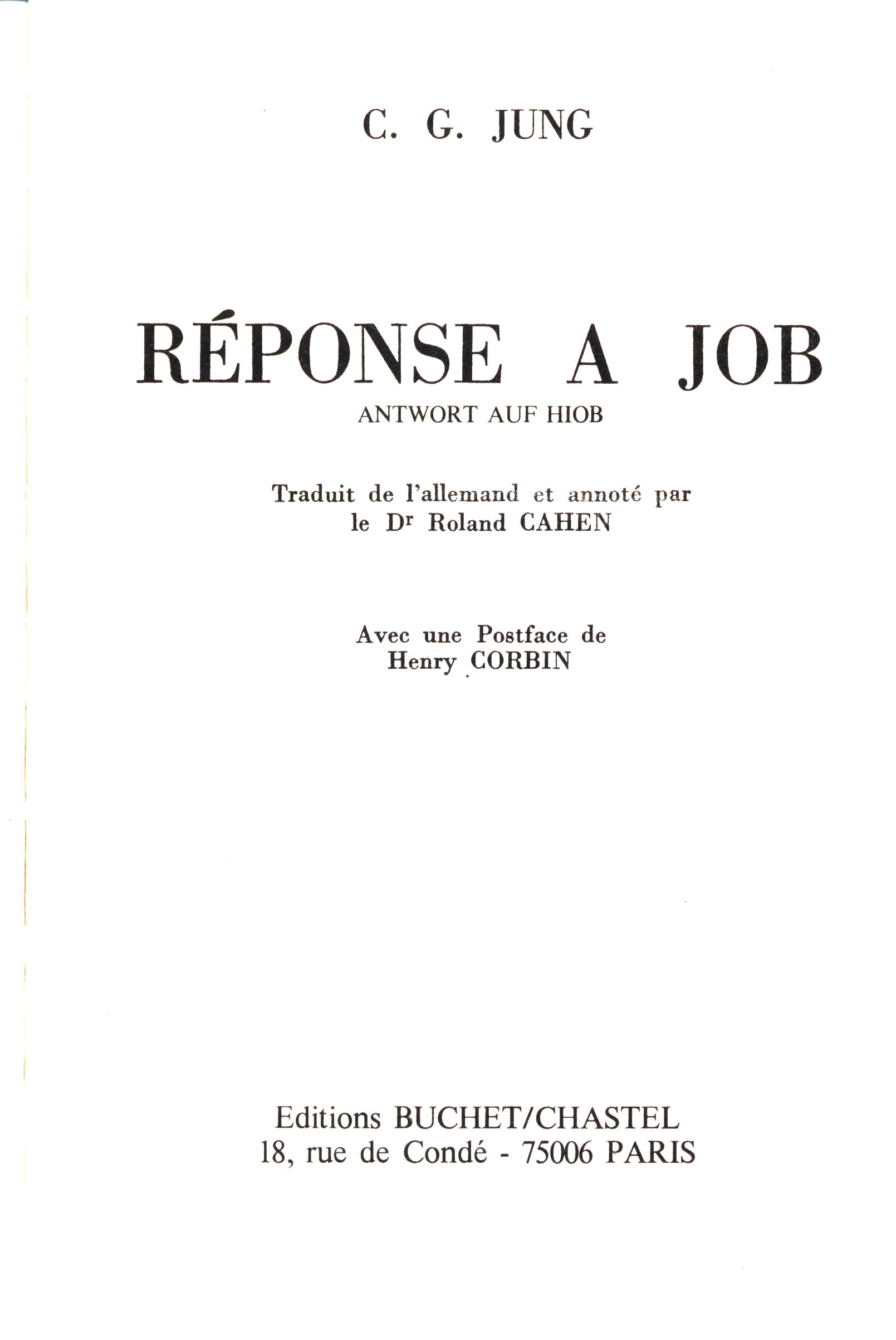 Title information Réponse a Job : Antwort auf Hiob / G. G. Jung ; traduit de l'allemand et annoté par Roland Cahen ; avec une postface de Henry Corbin Personal name Jung, Carl Gustav, 1875-1961 (Author) Další autoři Cahen, Roland, (Translator) 1914-1998 Corbin, Henry, 1903-1978 (Author of afterword, colophon, etc.) Corporation Editions Buchet/Chastel (nakladatelství) (Publisher) Imprimerie Jacques Grou-Radenez (Printer) Publication Paris : Editions Buchet/Chastel, 1977 Manufacture Imprimerie Jacques Grou-Radenez Scope 301 stran ; 21 cm ISBN (brožováno) Country France Language French Language of the original German Note Barevná zdobená obálka. - Na přední záložce obálky anotace. - Na frontispisu soupis děl autora. - Rejstřík.