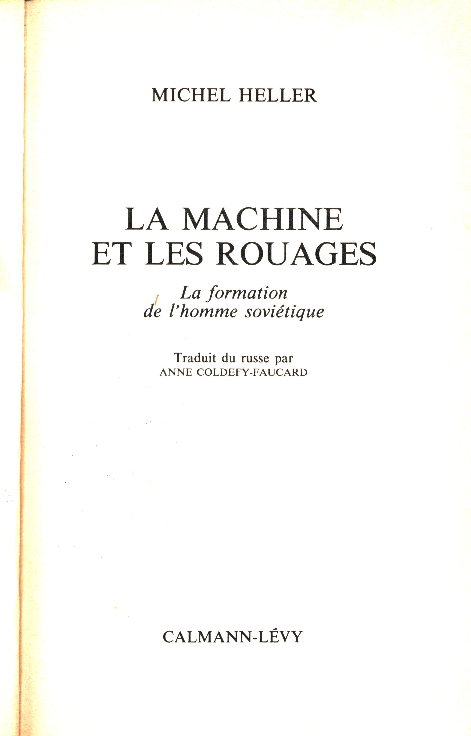 Title information La machine et les rouages : la formation de l'homme soviétique / Michel Heller ; traduit du russe par Anne Coldefy-Faucard Personal name Heller, Michel, 1922-1997 (Author) Další autoři Coldefy-Faucard, Anne (Translator) Corporation Calmann-Lévy (firma) (Publisher) Floch (francouzská tiskárna) (Printer) Publication [Paris] : Calmann-Lévy, [1985] Manufacture Mayenne : Floch Copyright notice date ©1985 Scope 322 stran ; 21 cm ISBN 2-7021-1381-8 (brožováno) Edition Liberté de l'esprit
