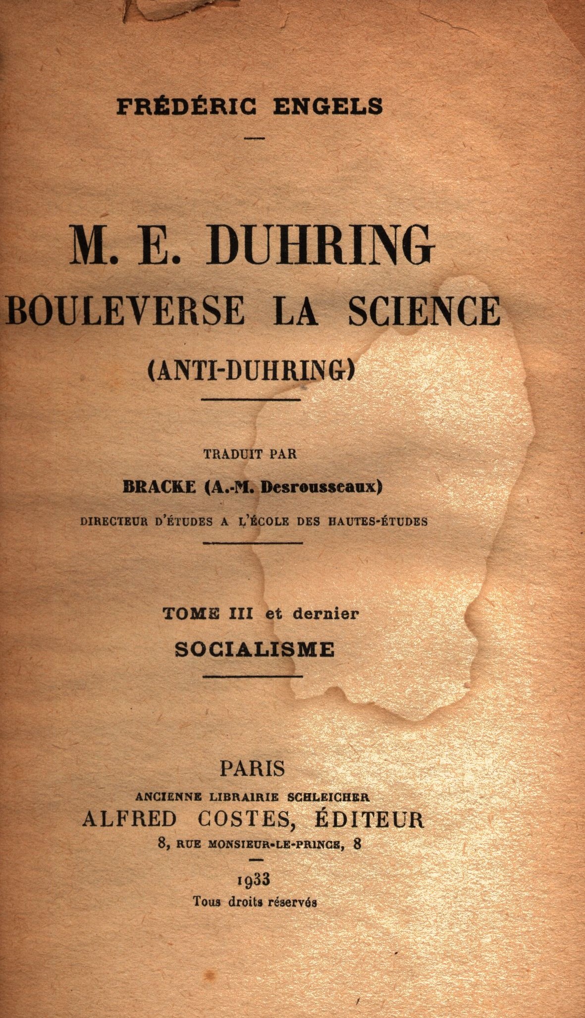 1. Title informationM. E. Duhring bouleverse la science: (anti-Duhring) / Frédéric Engels ; traduit par Bracke (A.-M. Desrousseaux)
