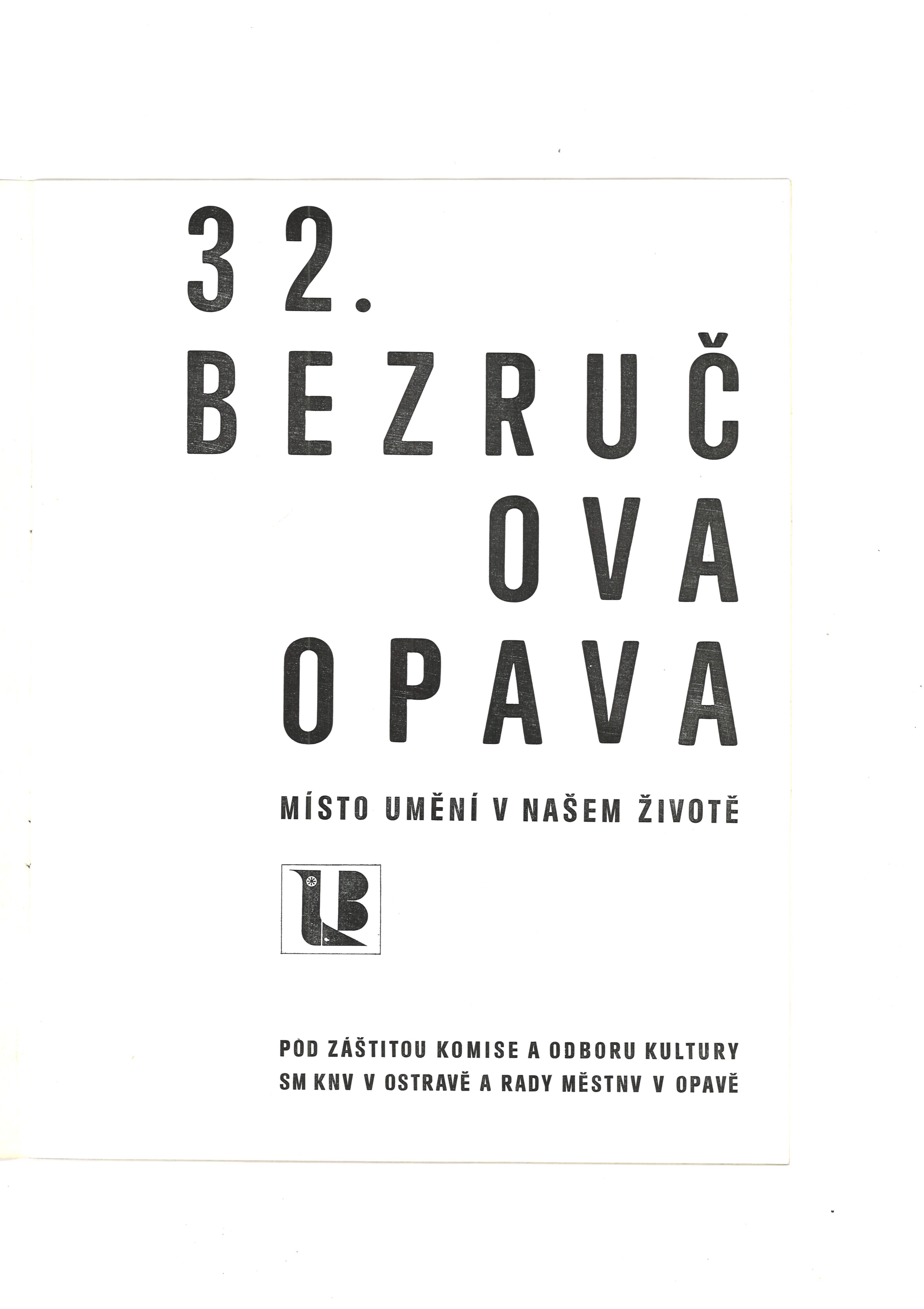 Barevná ilustrovaná obálka. - Na přílohách portrét Petra Bezruče (linoryt Josefa Weisera) a rozmnožený strojopisný informační leták s nabídkou knihy o P. Bezručovi. - Černobílé a tónované fotografie. - Na rubu zadní strany obálky program festivalu. - Sešitová vazba