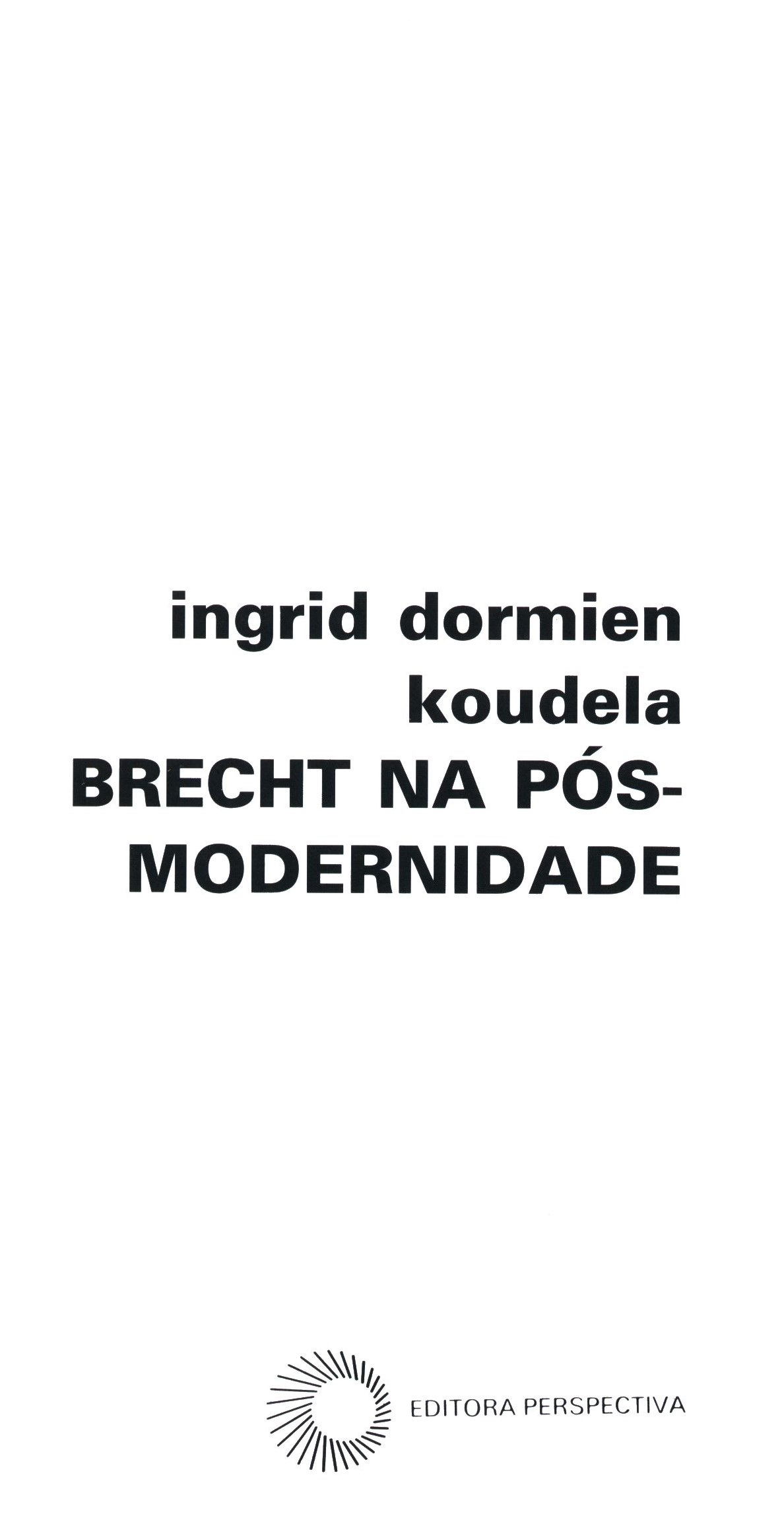 Title information Brecht na Pós-Modernidade / Ingrid Dormien Koudela Personal name Dormien Koudela, Ingrid (Author) Další autoři Editora Perspectiva (Publisher) Publication São Paulo : Editora Perspectiva, 2001 Scope 152 stran: reprodukce, čb. fotografie ; 21 cm ISBN 9788527302685 (brožováno) Country Brazil Language Portuguese Note Zdobená obálka. - Typografický titulní list. - Obsah. - Úvod. - Příloha. - Bibliografie.