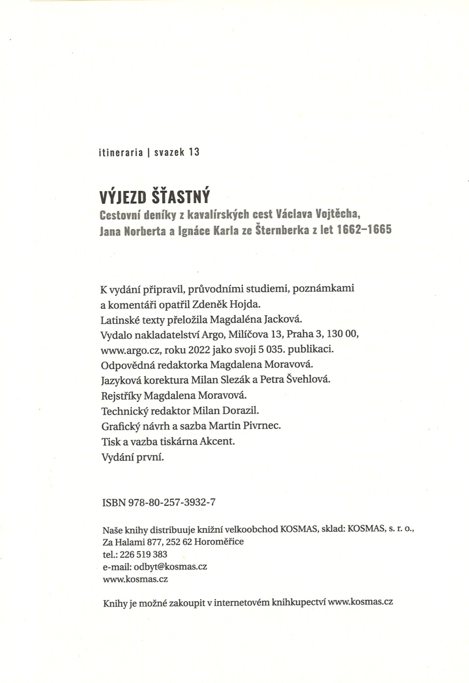 1. Title informationVýjezd šťastný : cestovní deníky z kavalírských cest Václava Vojtěcha, Jana Norberta a Ignáce Karla ze Štenberka z let 1662-1665 / Zdeněk Hojda (ed.) ; latinské texty přeložila Magdaléna Jacková