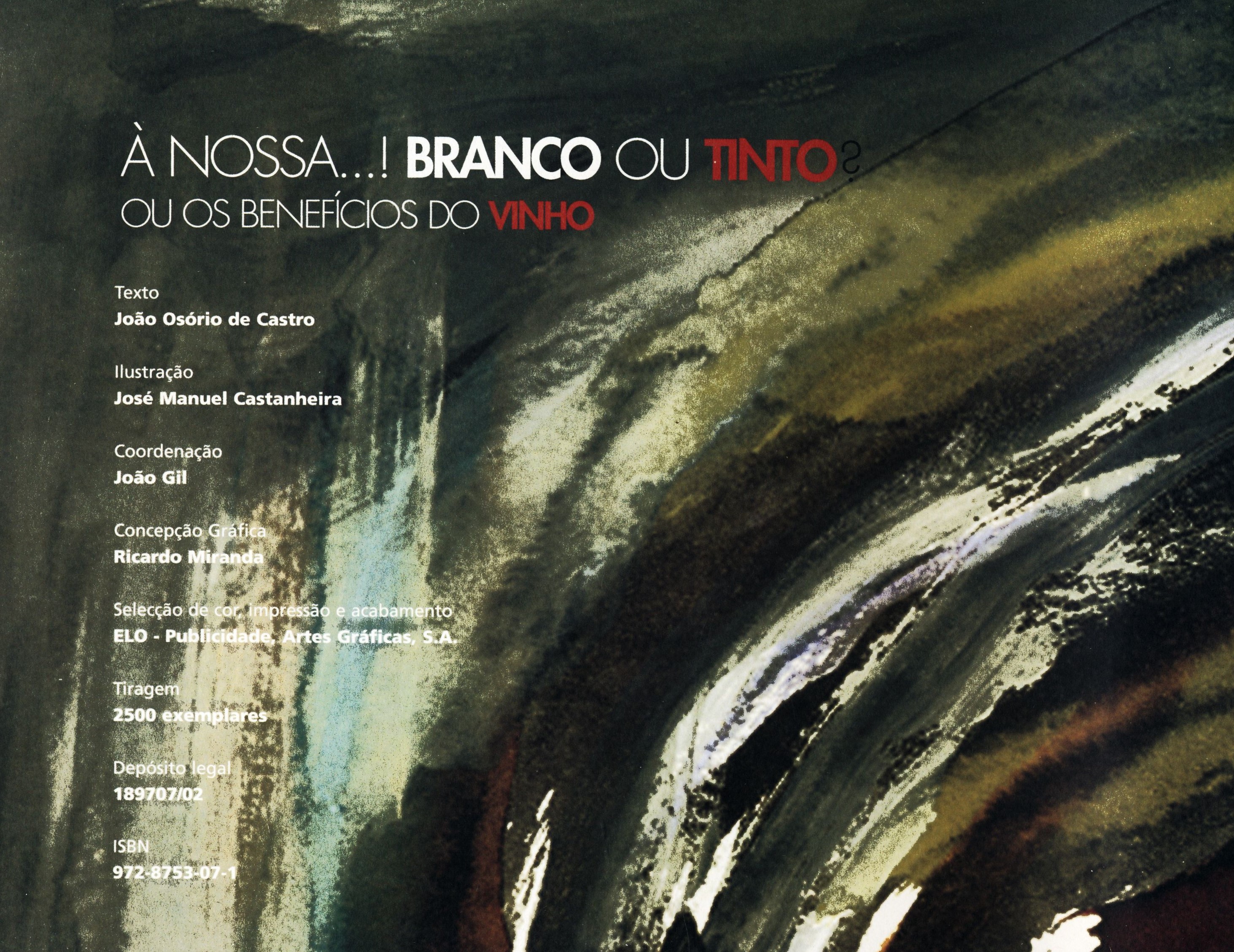 Title information À nossa...! Branco ou tinto? Ou os benefícios do vinho / escreveu: João Osório de Castro ; pintou: Castanheira Personal name Castro, João Osório de, 1926-2007 (Author) Další autoři Castanheira, José Manuel, 1952- (Illustrator) Corporation ELO - Publicidade, Artes Gráficas, S. A. (Publisher) (Printer) Publication [místo vydání není známé] : ELO - Publicidade, Artes Gráficas, S. A., [2003] Scope 35 stran : ilustrace ; 23 x 28 cm ISBN 972-8753-07-1 (brožováno) Country Portugal Language Portuguese Note Zdobená obálka. - Předmluva. - Ilustrovaný frontispis. - Ilustrace