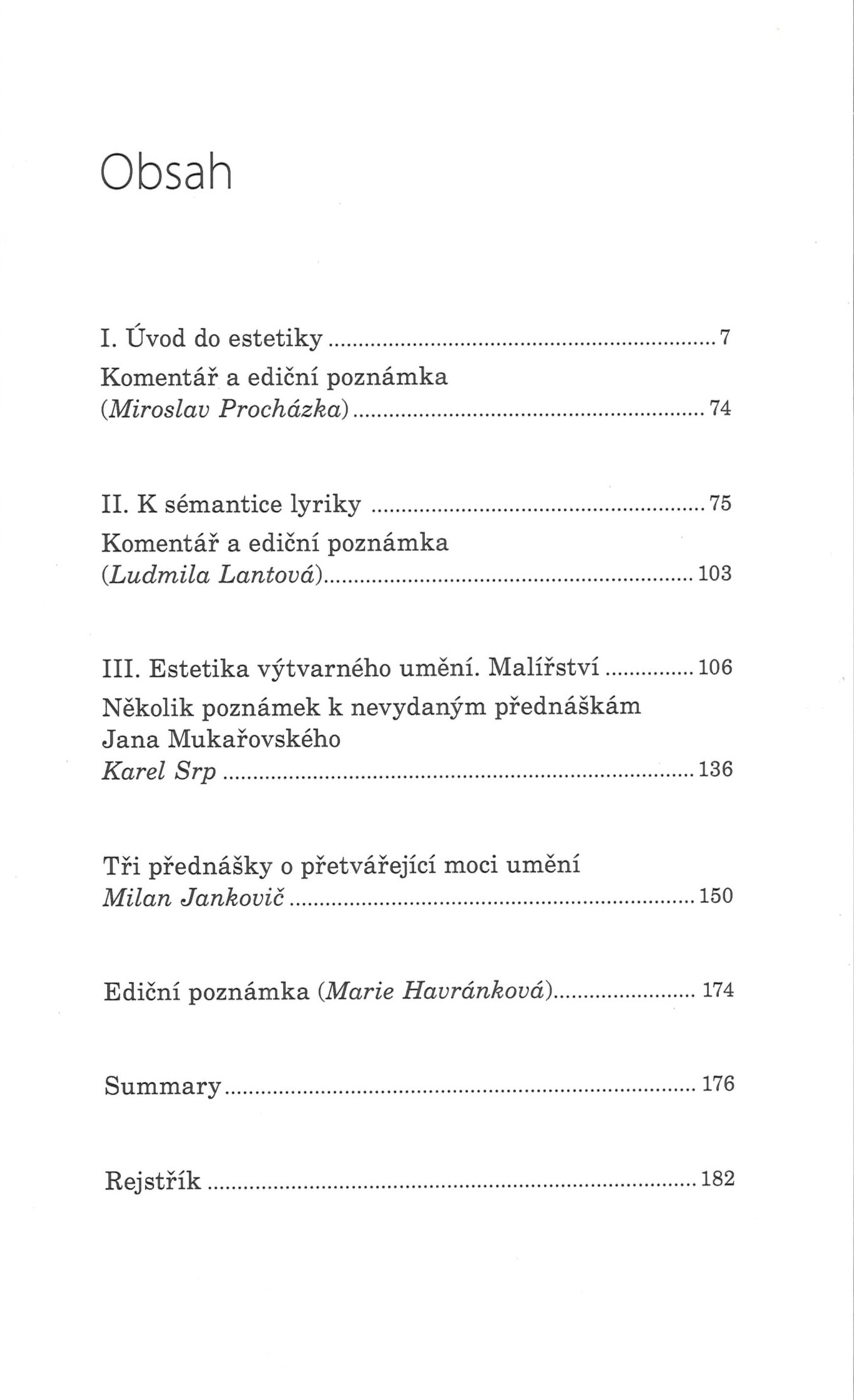 Keywords odborná literatura * univerzitní přednášky * estetika * česká poezie * lyrika * sémantika * výtvarné umění * malířství * estetika umění * estetické studie * stol. 20.
