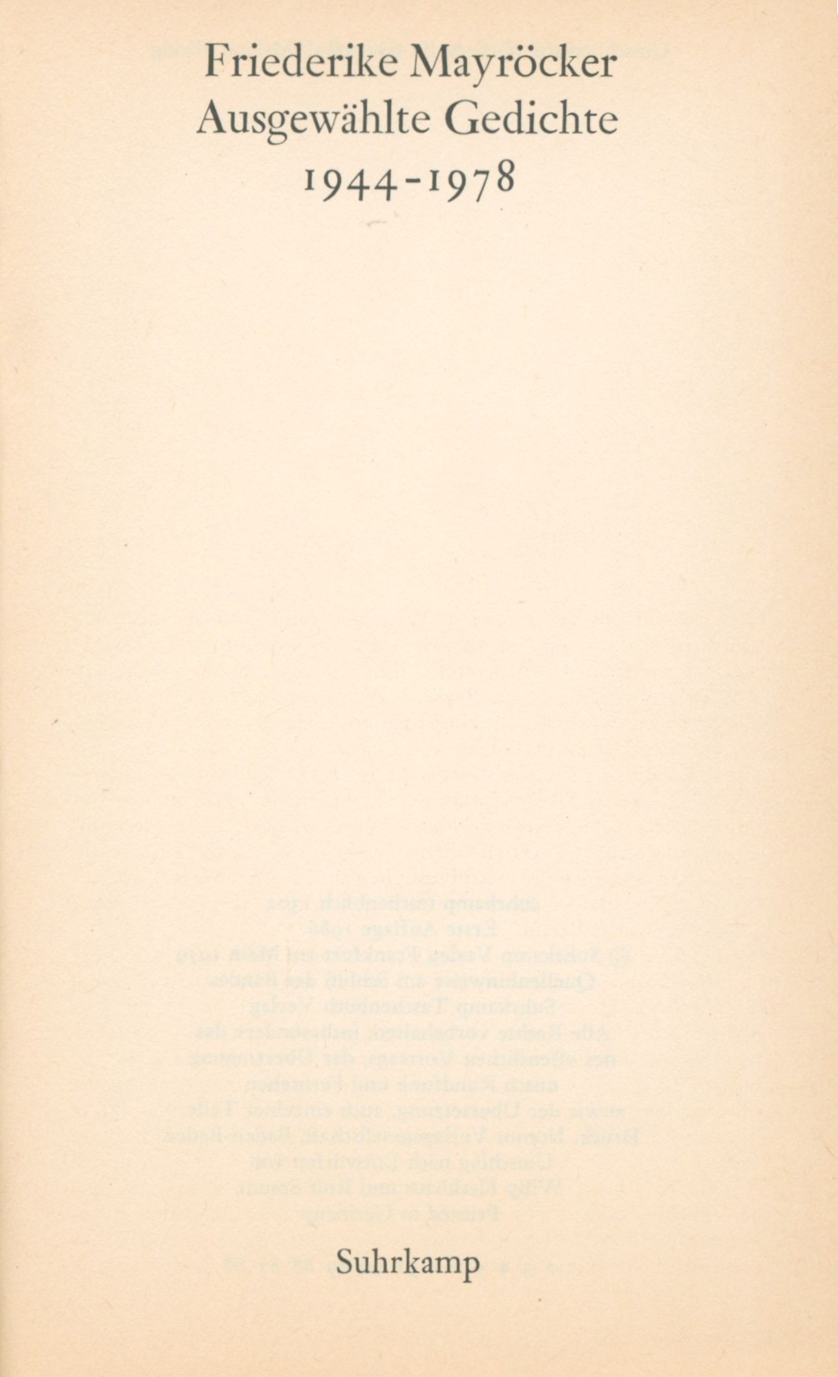 1. Title informationAusgewählte Gedichte : 1944-1978 / Friederike Mayröcker