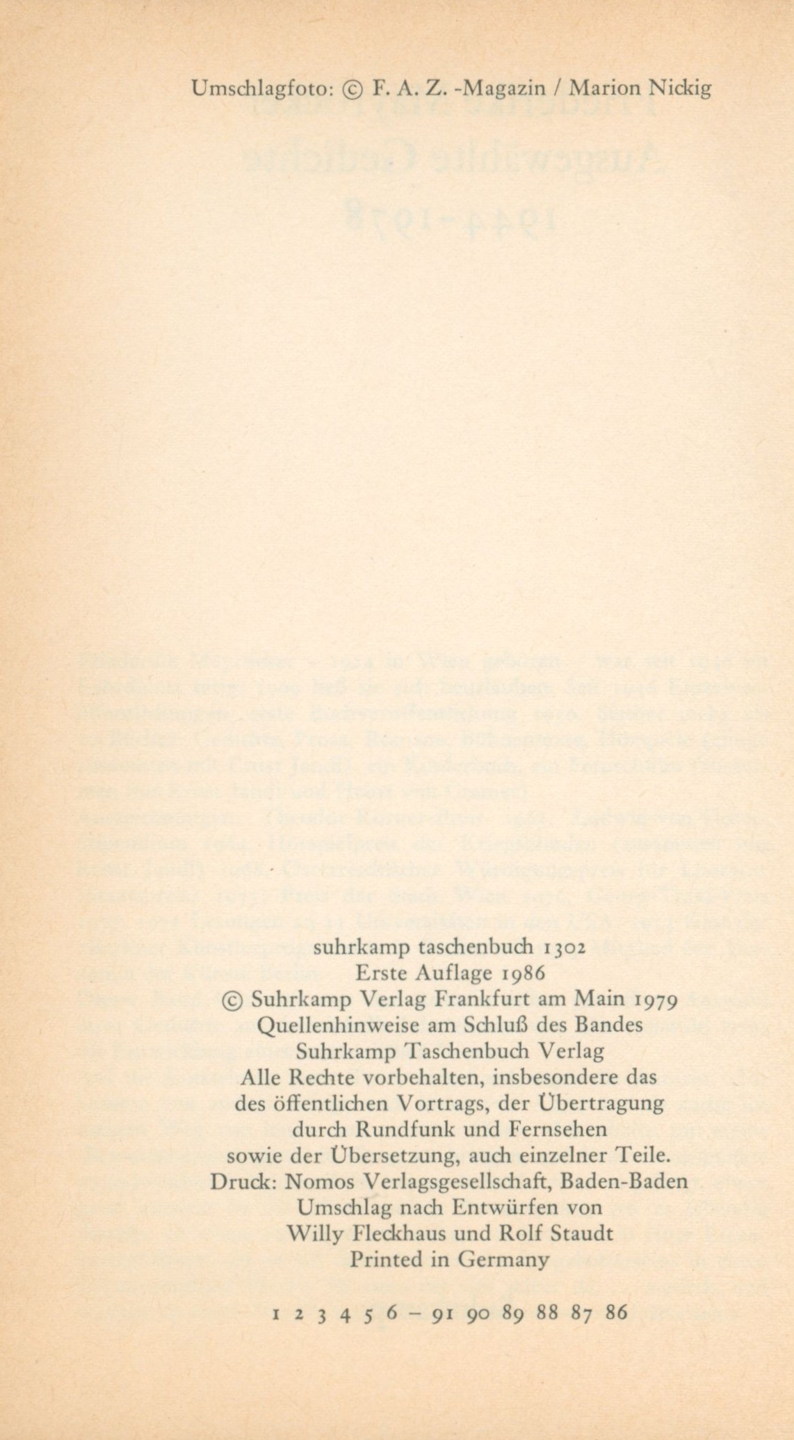 Poznámka o dalších původcíchUmschlag nach Entwürfen von Willy Fleckhaus und Rolf Staudt