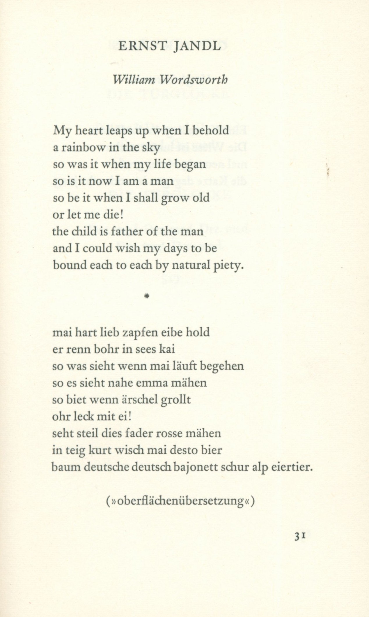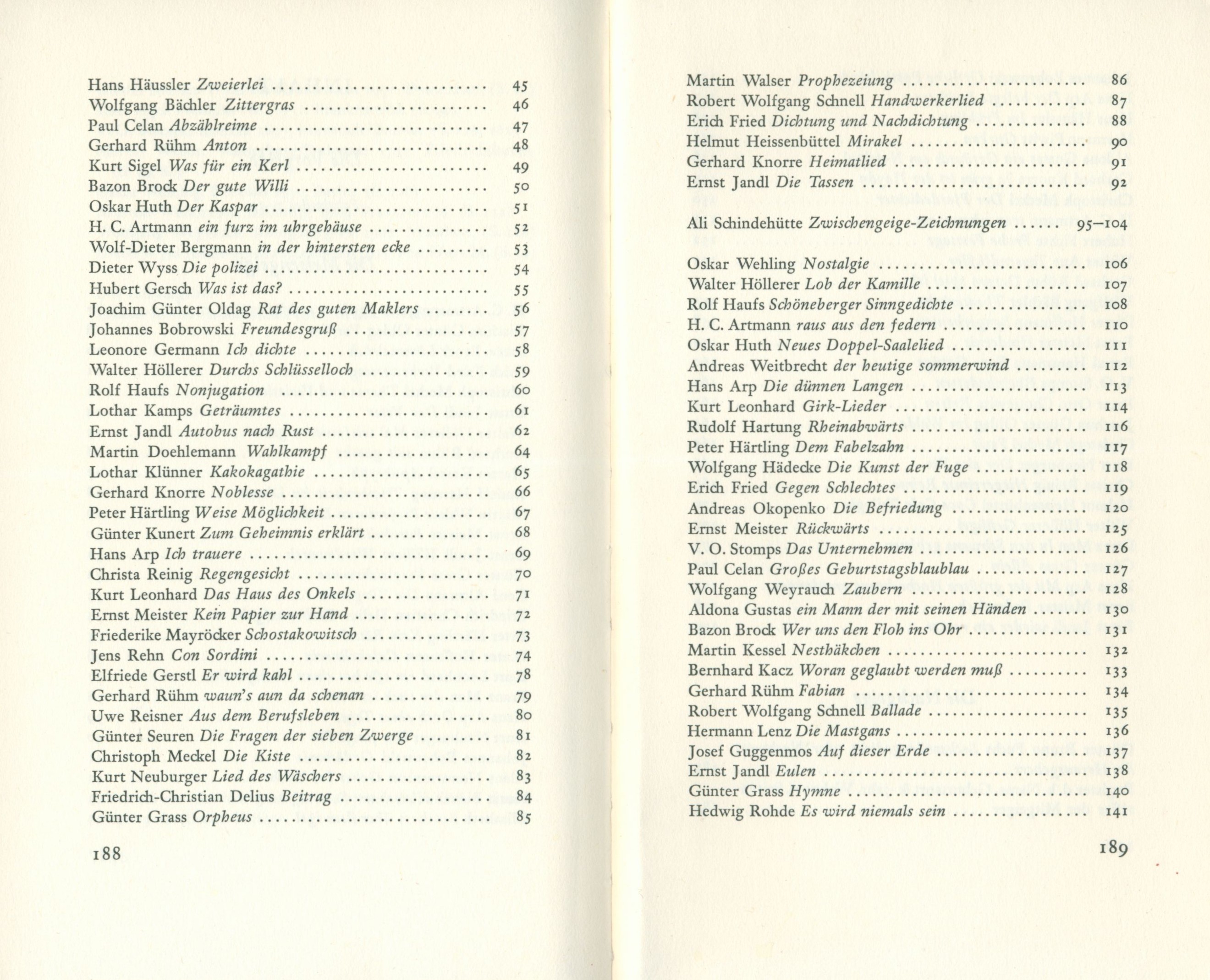 Annotation Šedesát šest německy mluvících básníků se v této sbírce „současných nesmyslných veršů" pokouší být dobrovolně vtipní. Document kind monografie Internal Bibliographies/Indexes Note Obsahuje jmenný rejstřík Keywords německá literatura * nonsensová poezie * soubor básní * současní básníci * němečtí básníci * nesmyslné verše * Německo * r. 1964 UDC 82-1 * (430) * 821.112.2 Uživatelské pole PNP V knize se sign. H&G 0149 - na vakátě ručně psaná dedikace autora B.G. (Bohumila Grögerová) s datací Wien, 14.8. 1965. Kniha se sign. H&G 0146 - dodatek ke knihovnímu celku Hiršal-Grögerová. Call number Track No. Location Info H&G 0149 0477/2026 Sbírka