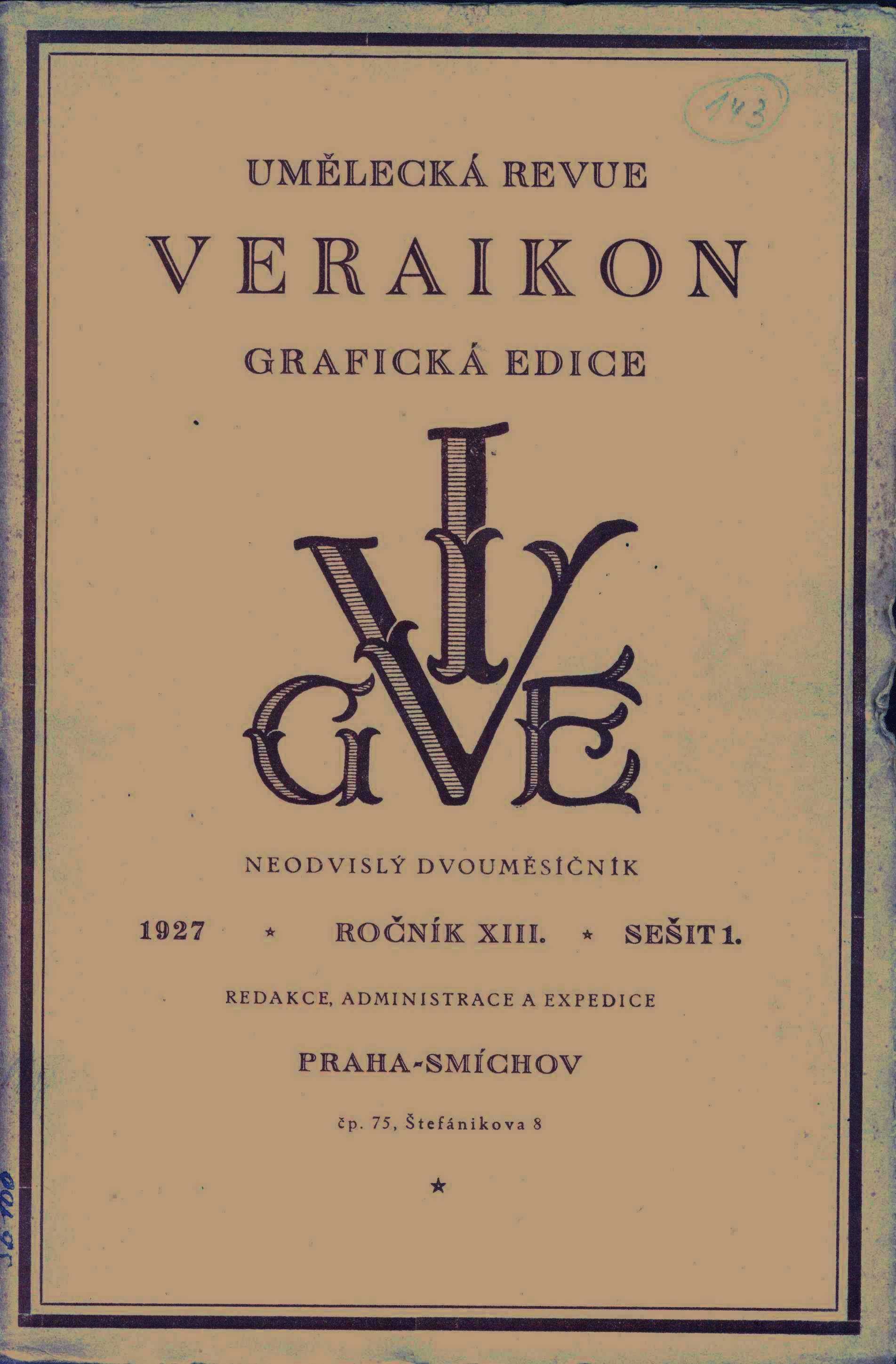 $w pnp_us_cat*064466 $t Veraikon $d Praha : Emil Pacovský, 1912-1937 $7 nnas T85 $x existuji fulltexy UUU $a Sign. QpIV F45: volná čísla v zelených poloplátěných vázacích deskách, zlacený hřbetní název, kompletní ročník včetně obálek a příloh. UUU $a Sign. QpIV F46:volná nesvázaná čísla v deskách, kompletní ročník (chybí barevná příloha - Roman Havelka: Z Moravy)