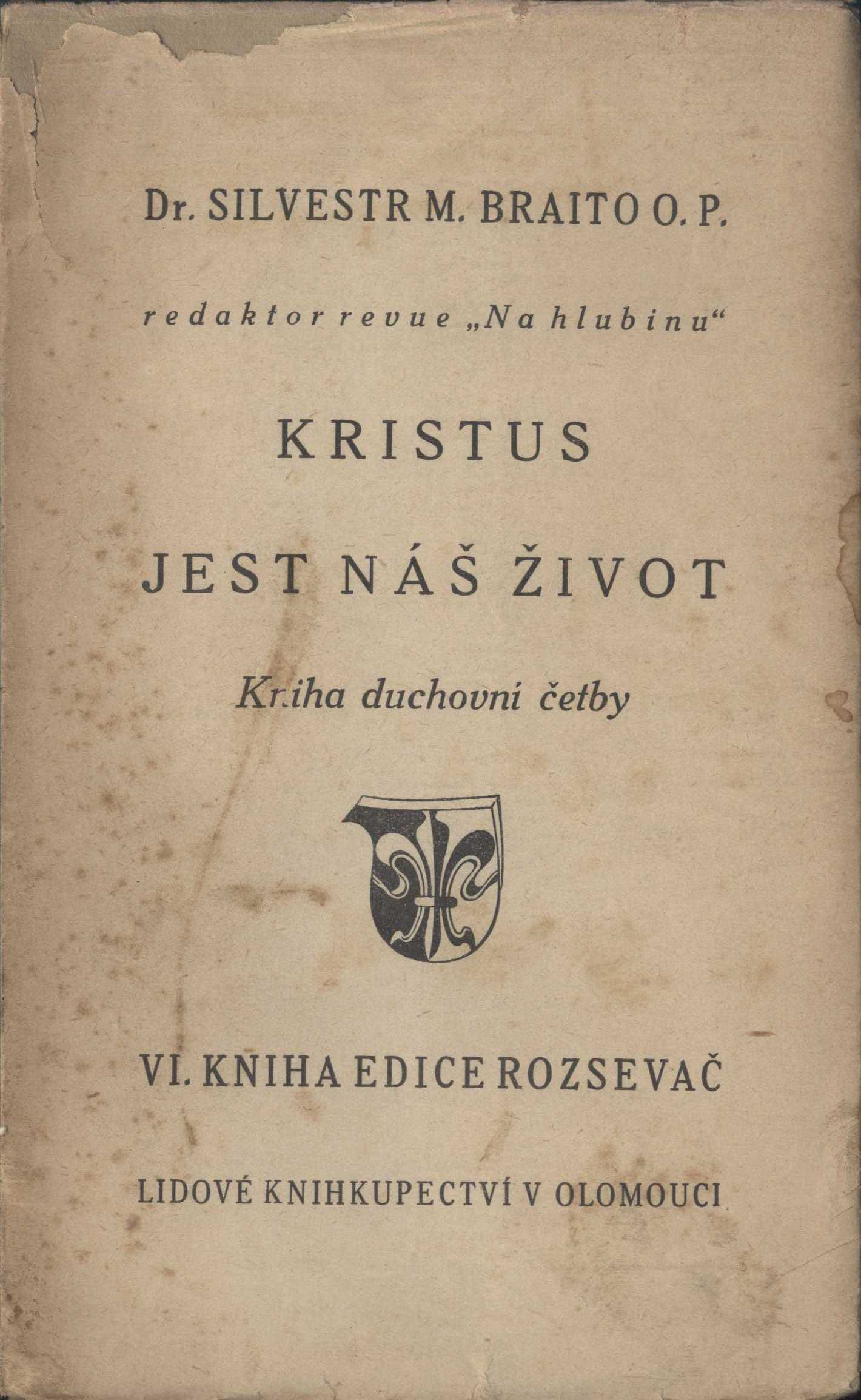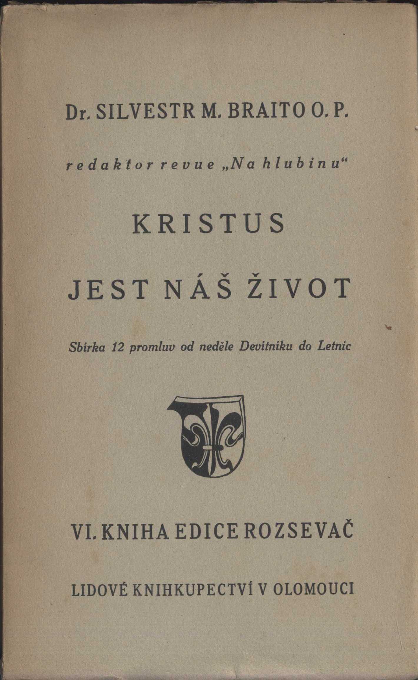 Title information Kristus jest náš život : sbírka 12 promluv od neděle Devítníku do Letnic / Silvestr M. Braito Personal name Braito, Silvestr Maria, 1898-1962 (Author) Další autoři Lidové závody tiskařské a nakladatelské (Olomouc) (Printer) Lidové knihkupectví (knihkupectví a nakladatelství) (Publisher) Publication V Olomouci : Lidové knihkupectví, 1935 Manufacture (Lidové závody tiskařské a nakladatelské) Scope 114 s. ISBN brož. Edition Rozsevač kniha 6