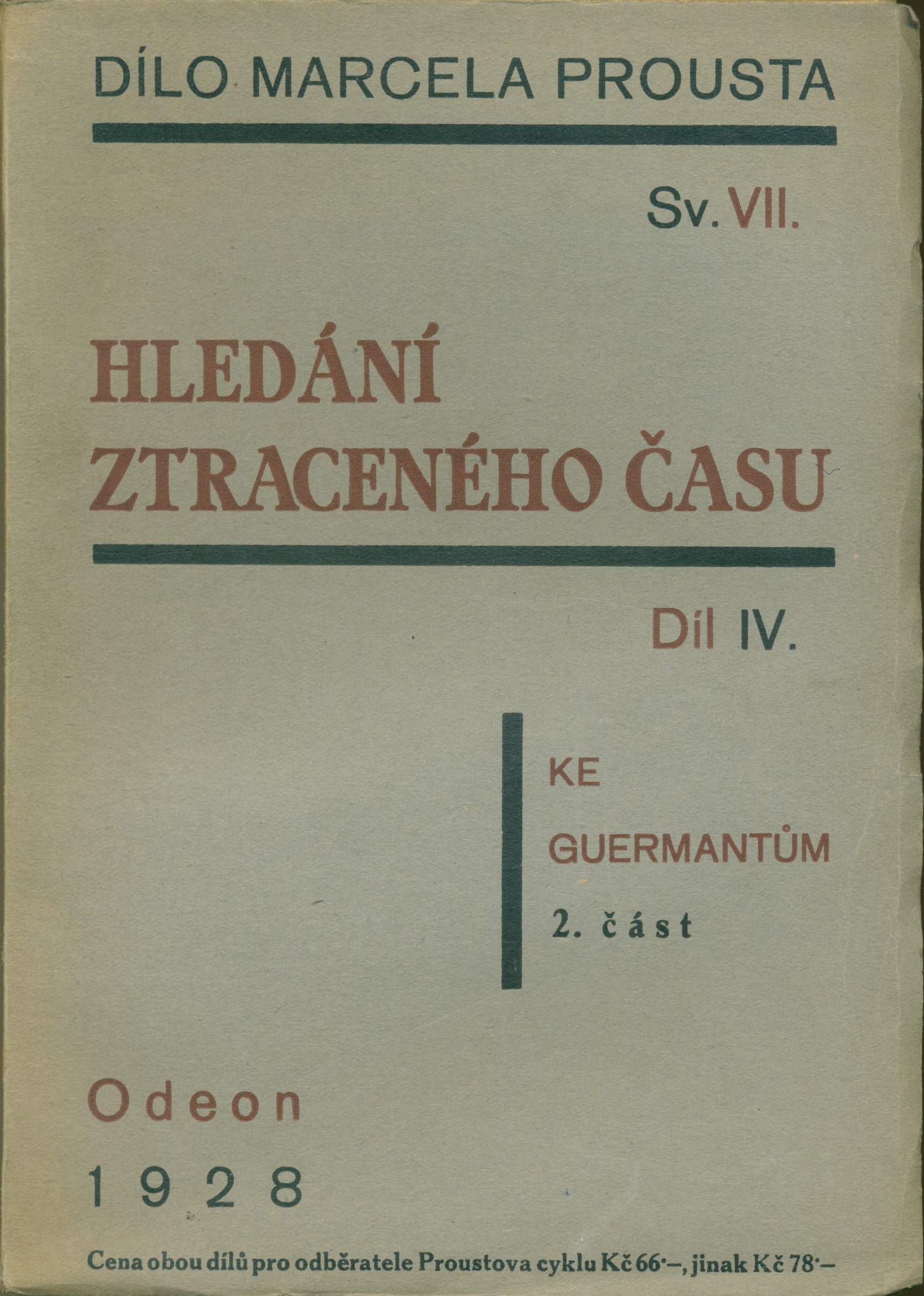 Dílo, Marcel Proust (Odeon, Jan Fromek) Odeon, (Jan Fromek)Country Czech Republic Language Czech Language of the original French Note Titulní list a obálka podle návrhu Karla Teigeho