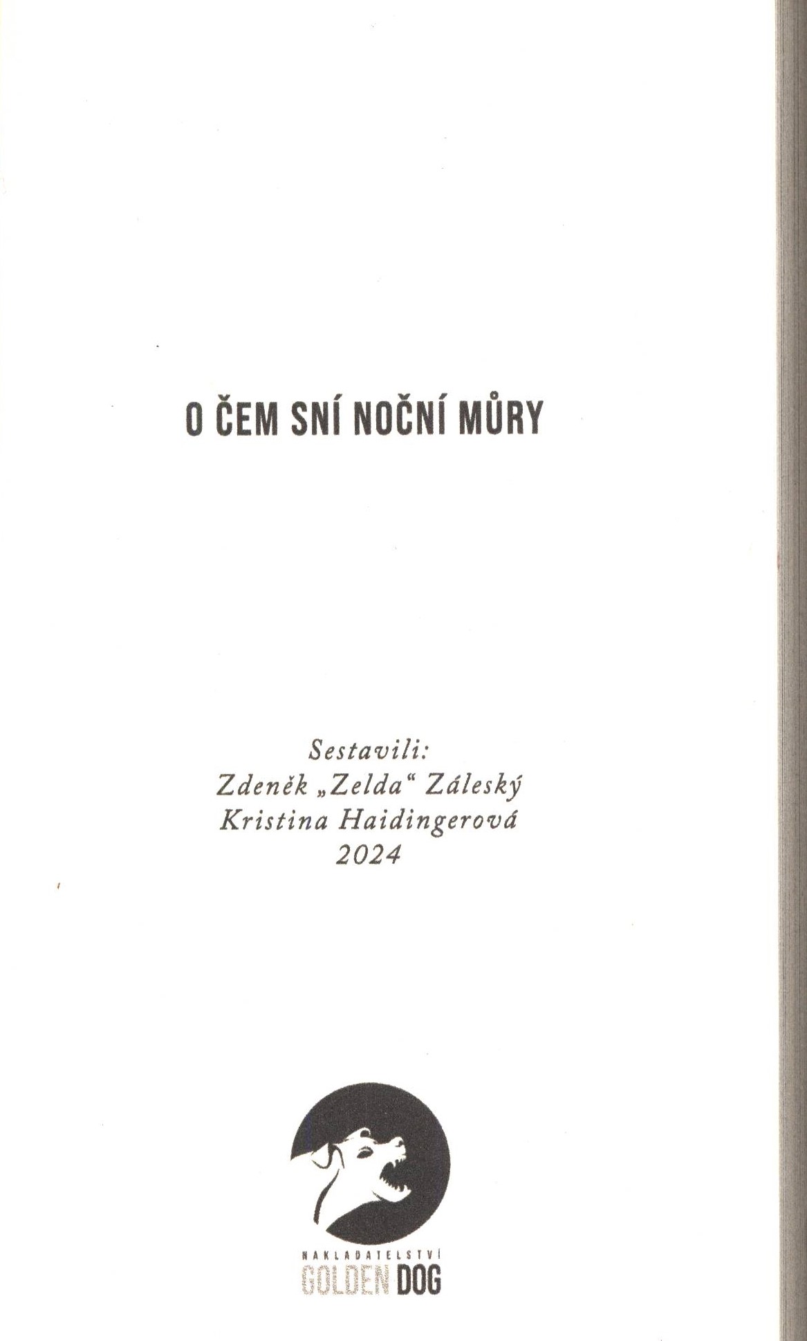 1. Title informationO čem sní noční můry / sestavili: Zdeněk "Zelda" Záleský, Kristina Haidingerová ; vnitřní ilustrace Anna Chlapcová ; grafické zpracování a sazba Michal Březina