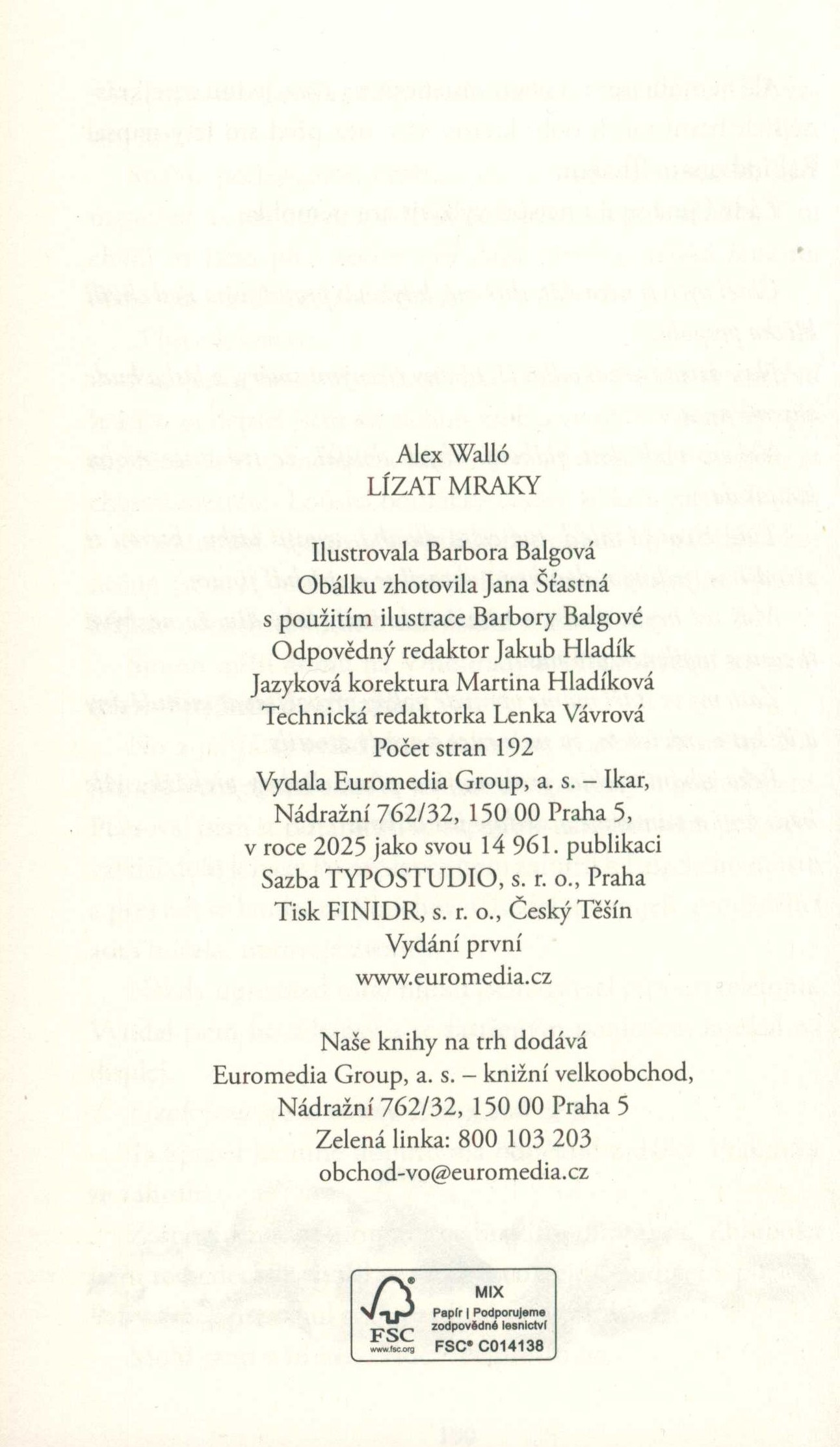 1. Title informationLízat mraky / Alex Walló ; ilustrovala Barbora Balgová ; obálku zhotovila Jana Šťastná s použitím ilustrace Barbory Balgové