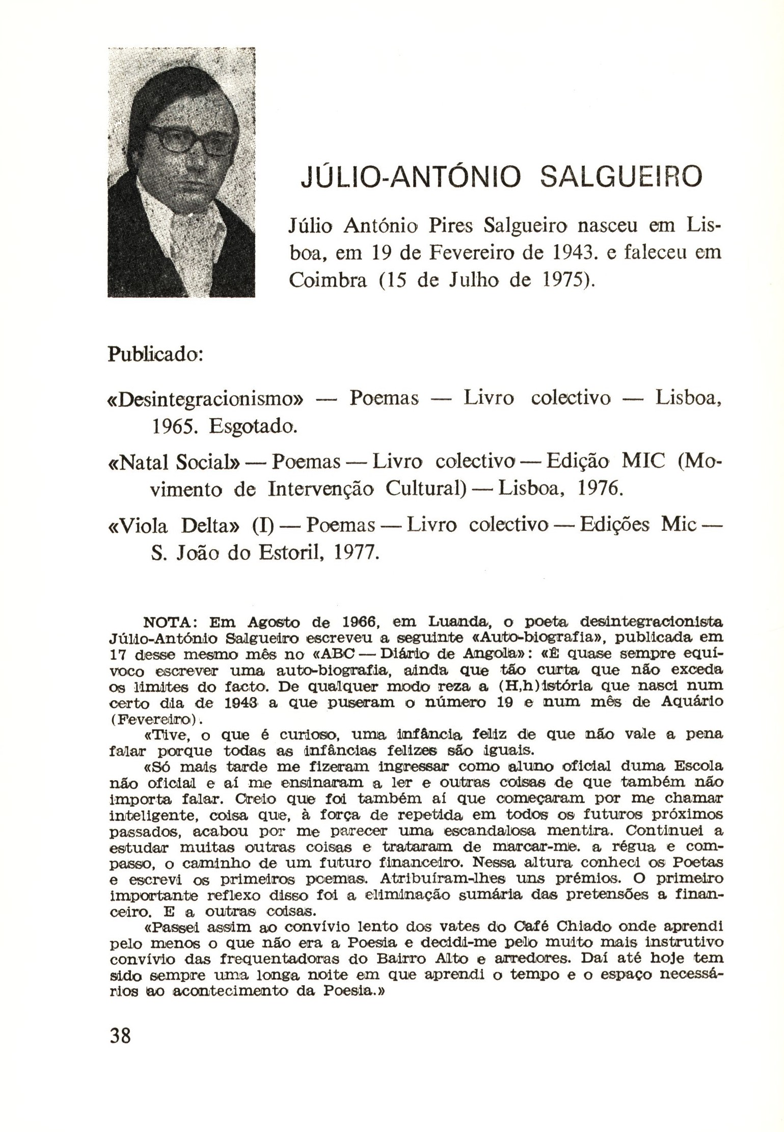 Title information Viola delta II : Poemas / Carlos Manuel Nogueira ; Fernando Grade ; João Centeno Castanho ; José Carlos Soares ; Júlio-António Salgueiro Personal name Nogueira, Carlos Manuel (Author) Další autoři Grade, Fernando, 1943- (Author) Centeno Castanho, João (Author) Soares, José Carlos (Author) Salgueiro, Júlio-António (Author) Corporation Edições Mic (Publisher) Editorial Minerva (Printer) Publication S. João do Estoril : Edições Mic, 1978 Manufacture Lisabon : Editorial Minerva, Scope 46 stran : čb. ilustrace, reprodukce, čb. fotografie ; 20 cm ISBN (Vázáno) Country Portugal Language Portuguese Note Barevná typografická obálka. - Seznam knih publikovaných v nakladatelství. - Typografický titulní list. - Obsah.