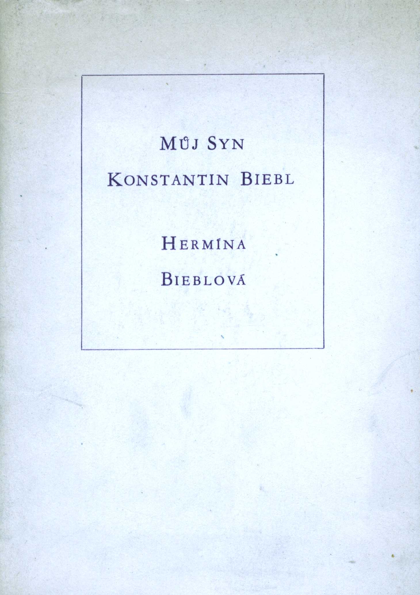 1. Title informationMůj syn Konstantin Biebl / Hermína Bieblová ; [doslov napsal Z.K. Slabý ; typograficky upravil a obálku navrhl Zdenek Seydl]