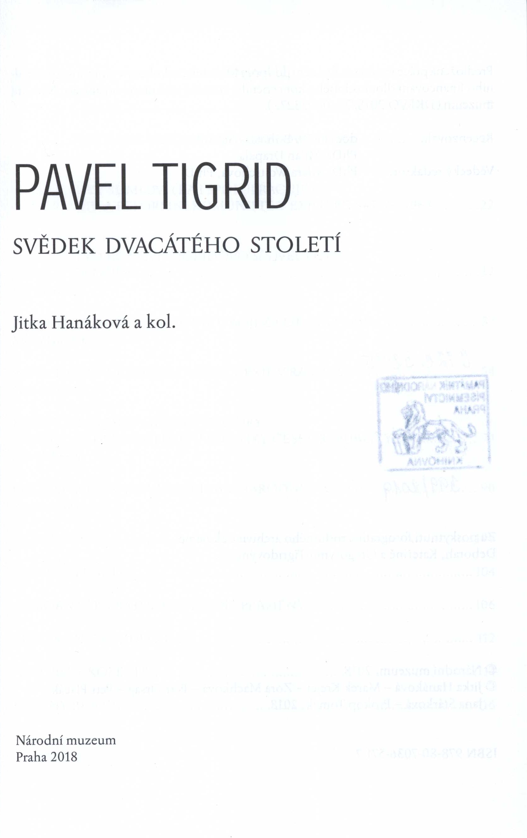 Title information Pavel Tigrid : svědek dvacátého století / Jitka Hanáková a kol. ; návrh obálky, grafická úprava a sazba: ARTEDIT, spol. s r. o. Personal name Hanáková, Jitka, 1962- (Author) (Author of introduction) Další autoři Národní muzeum (Praha, Česko) (Publisher) TNM PRINT s. r. o. (tiskárna) (Printer) ARTEDIT, spol. s r. o. (polygrafická společnost) (Bookjacket designer) (Book designer) (Compositor) Edition statement 1. vydání Publication Praha : Národní muzeum, 2018 Manufacture [Praha] : ARTEDIT, spol. s r.o. Scope 125 stran, 48 nečíslovaných stran obrazových příloh : ilustrace (převážně barevné), portréty, faksimile ; 24 cm ISBN 978-80-7036-571-7 (vázáno) Country Czech Republic Language Czech Note Barevná obálka s barevnou fotografií P. Tigrid, bílý text, logo Národního muzea; černý hřbet s bílým textem. - Na přední záložce stručná biografie a bibliografie P. Tigrida. - Bílá vazba, šedý čtverec s černým textem a logem NM, černý text i na hřbetu. - Logo NM na vakátě. - Obsah. - Úvod J. Hanáková. - Příspěvky jednotlivých autorů. - Na příloze na křídovém papíře černobílé, tónované a barevné fotografie, portréty, faksimile s popisky. - Archivní fondy. - Autorský kolektiv. - Barevné foto manželů Tigridových na zadní straně obálky. - Přebal.