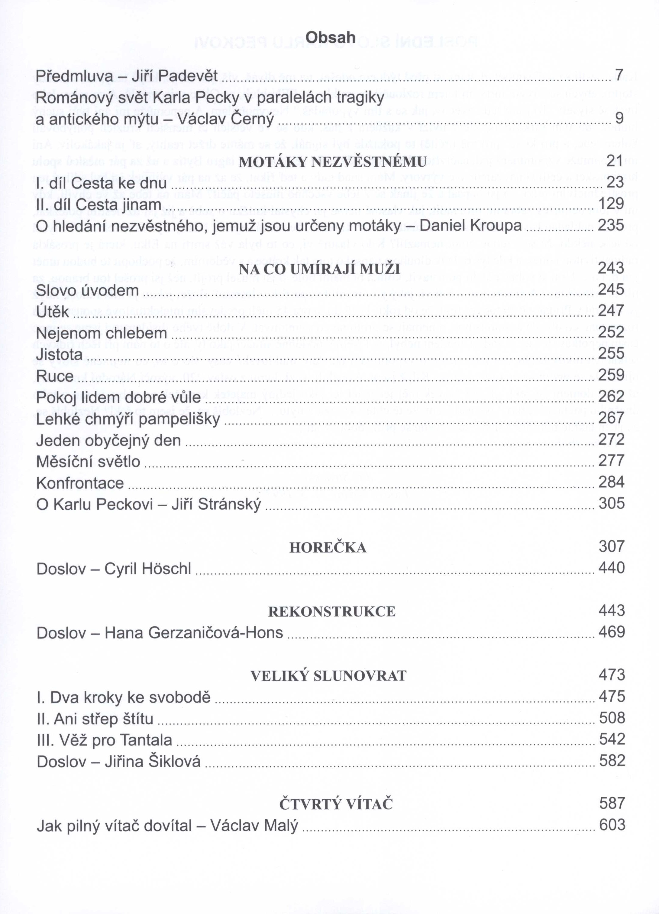Annotation Čtveřice románů, tři povídkové soubory, básnické sbírky a originální kafkovské povídky rozšířené o předmluvu Jiřího Padevěta, to vše přiblíží na 996 stranách, jak vypadal reálný komunistický režim v Československu. Během čtení sbírky poznáte svět lidí, kteří na vlastní kůži okusili přístup režimu ke všem s odlišným názorem. Sbírka je doplněna vynikajícími doslovy a úvahami od spisovatele Jiřího Stránského, socioložky Jiřiny Šiklové, filozofa Daniela Kroupy, biskupa Václava Malého, profesora Cyrila Höschla, politologa Petra Pitharta, básnířky Hany Gerzaničové a architektky Evy Jiřičné. Doslov napsal spisovatel Jiří Padevět. Knihu působivě dotváří osobité grafiky malíře Miloše Kotka. Document kind monografie Název na hřbetu Pecka Partial contents Motáky nezvěstnému -- Na co umírají muži -- Horečka -- Rekonstrukce -- Veliký slunovrat -- Čtvrtý vítač -- Malostranské humoresky -- Svůdnost černé barvy -- Štěpení Personal subjects Pecka, Karel, 1928-1997 - spisovatel, disident, politický vězeň Keywords česká literatura * příležitostný tisk * komentované vydání * výbor z díla * čeští spisovatelé * osobnosti * Pecka K. * Česko * stol. 20.-21. Genre/form keywords Czech prose * selected works * annotated editions UDC 821.162.3-051 * 821.162.3 * 821.162.3-3 * (0:82-3) * (082.21) * (0.072) URL http://nemohujinak.cz/ Uživatelské pole PNP Kniha je výborem z díla Karla Pecky a je myšlena jako pocta k jeho nedožitým devadesátým narozeninám. Call number Track No. Location Info C12c 5328 0892/2019 Sbírka