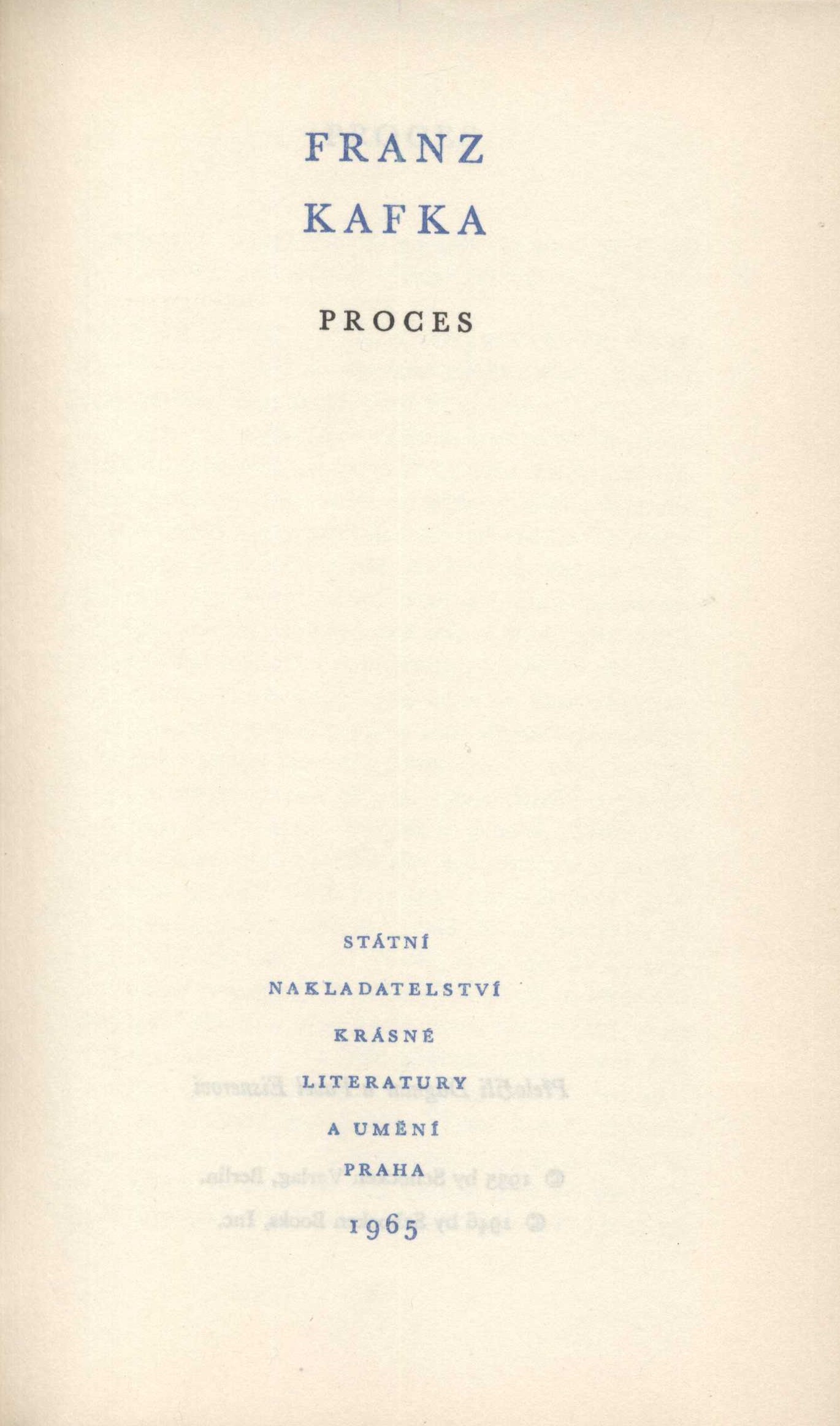 1. Title informationProces / Franz Kafka ; z německého originálu Der Prozess ... přeložili Dagmar a Pavel Eisnerovi