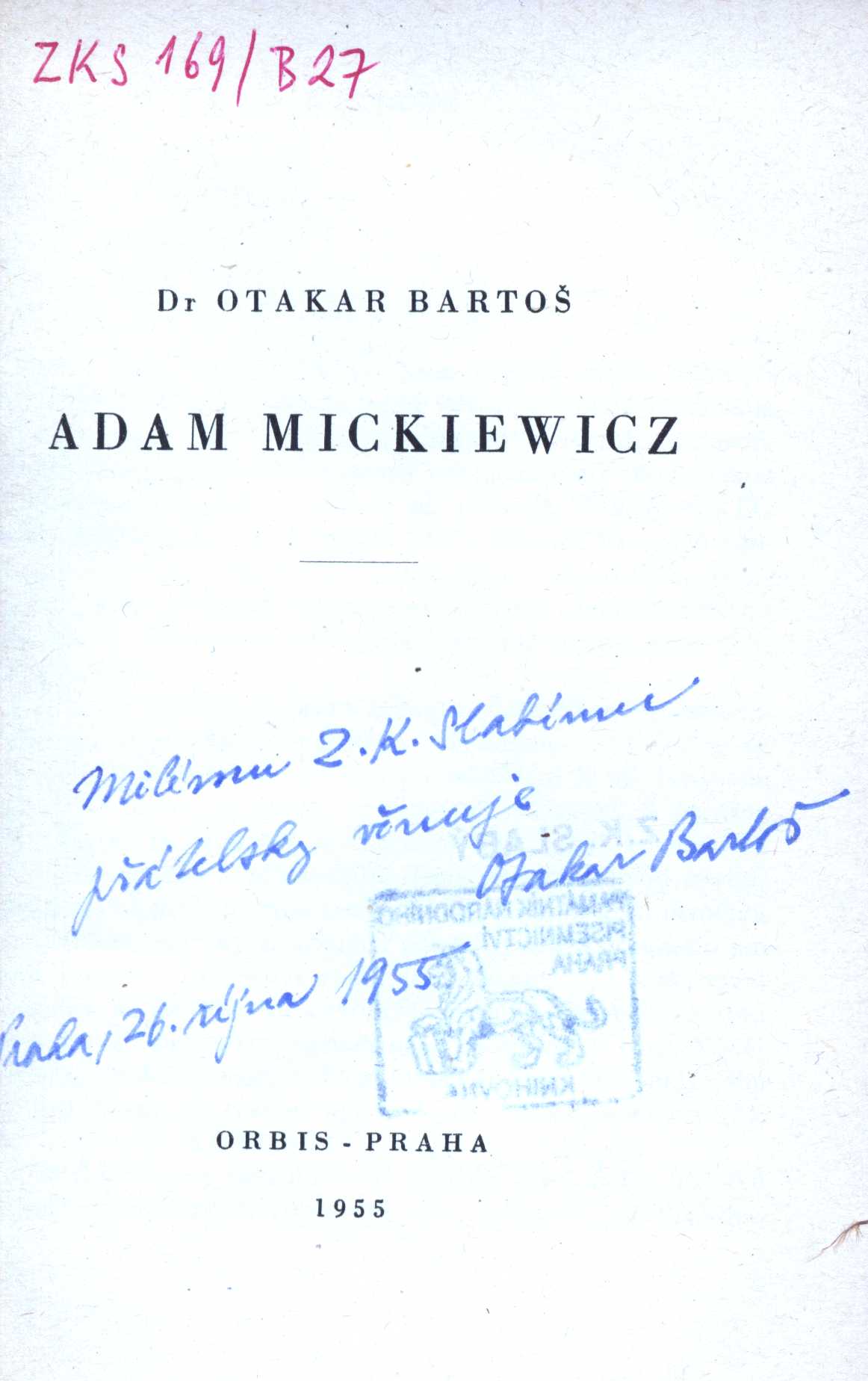 1. Title informationAdam Mickiewicz / Otakar Bartoš ; [obálku navrhl Karel Hladík]